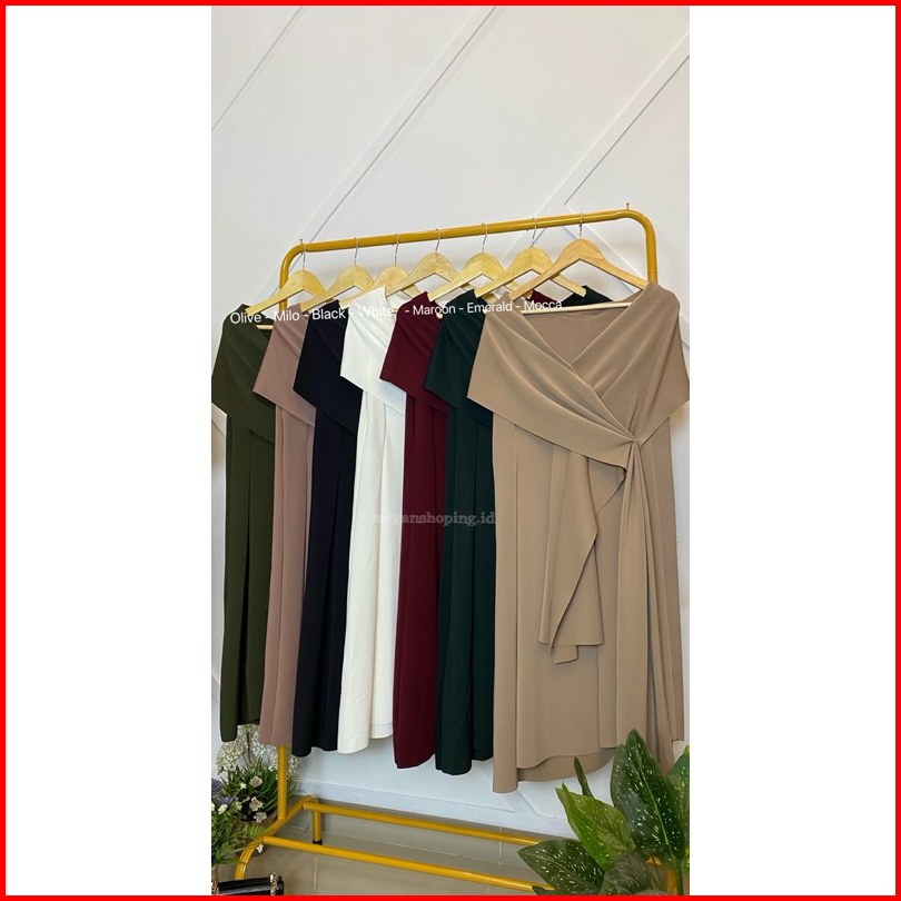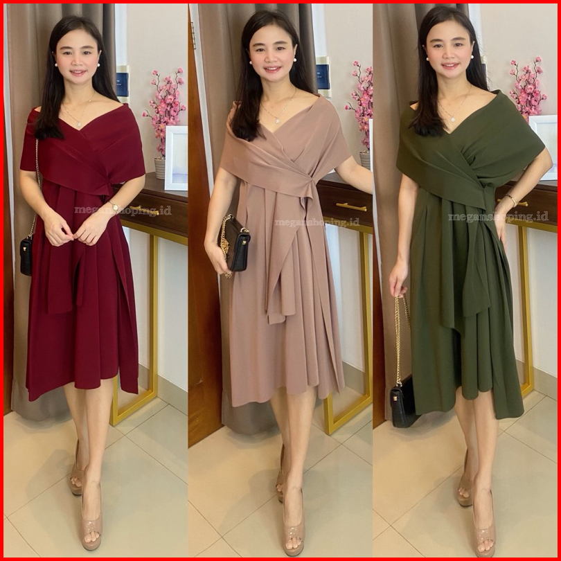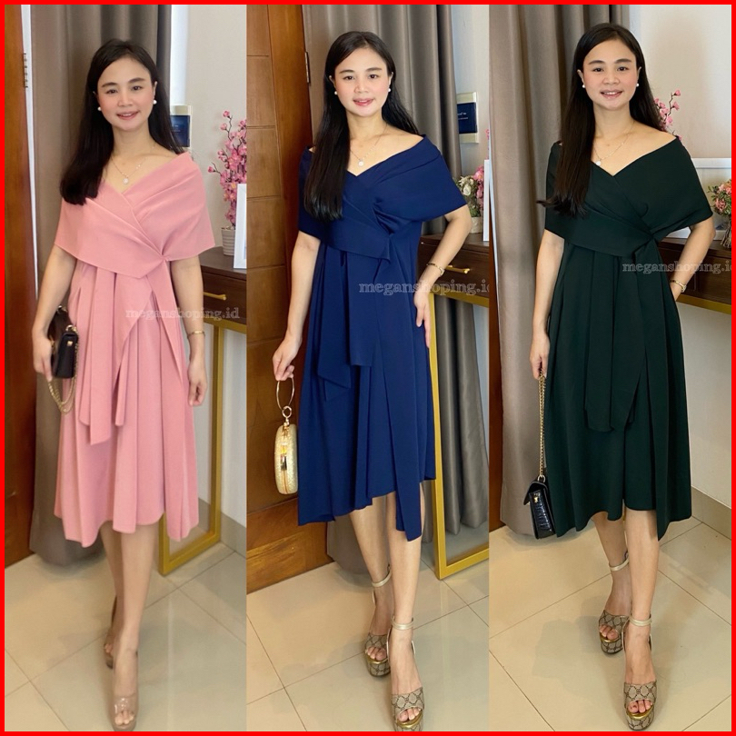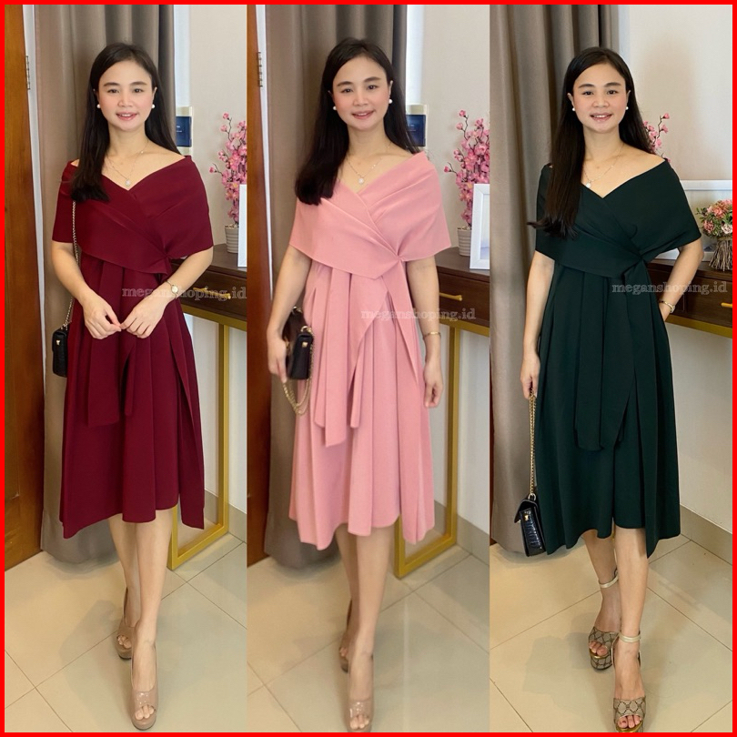 Meganshoping - Brittany Dress Sabrina Elegant Pre Wedding Kekinian Pesta Kondangan Midi Bridesmaid Natal Imlek Fashion W