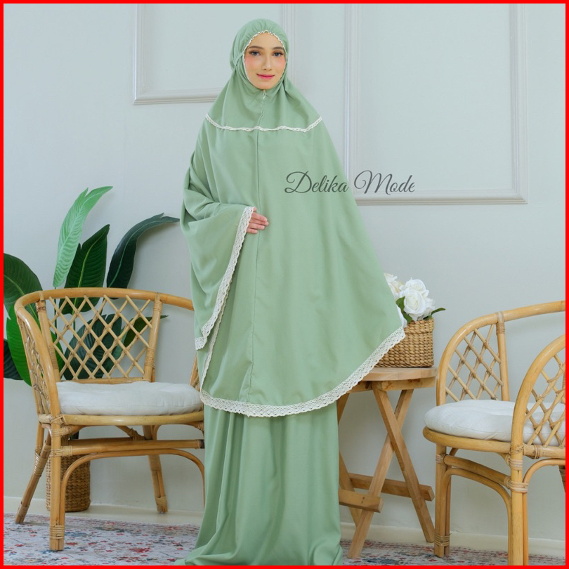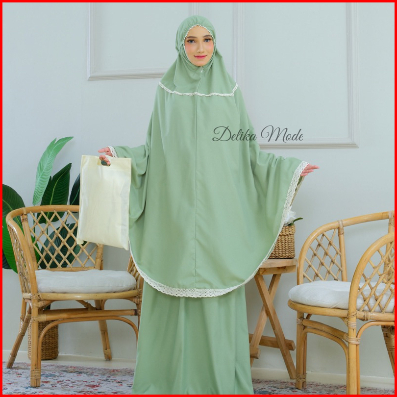 Delikamode - Mukena Dewasa Katun Premium Jumbo Polos Renda Inara Series