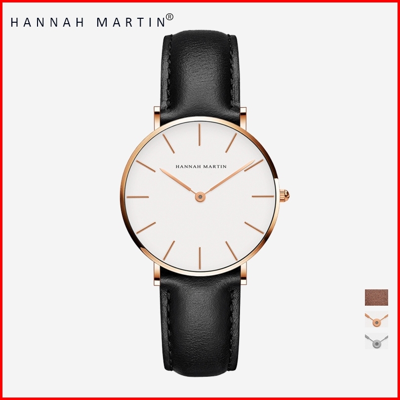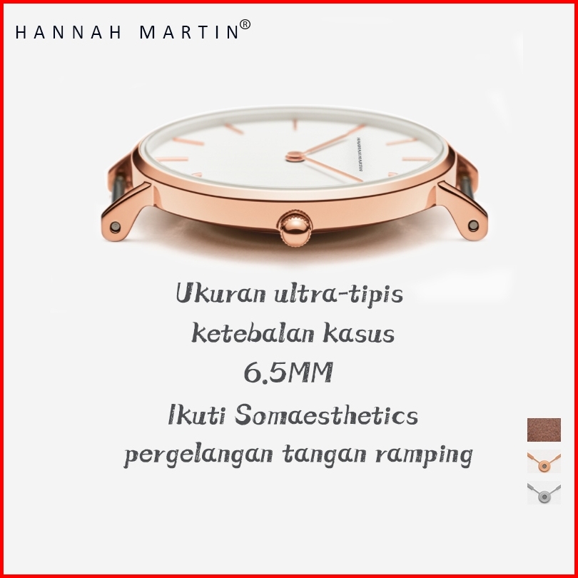 Hannah Martin Jam Tangan Wanita 100 Original Sangat Tipis Quartz Cewek Couple Kulit Anti Air Women Watch Laki Arloji Wom