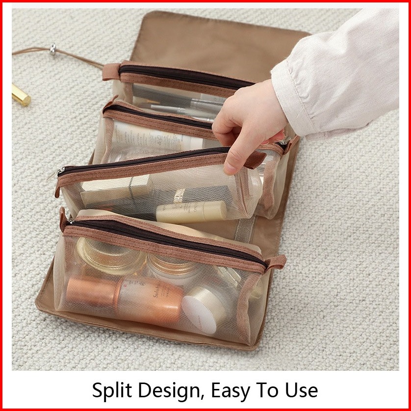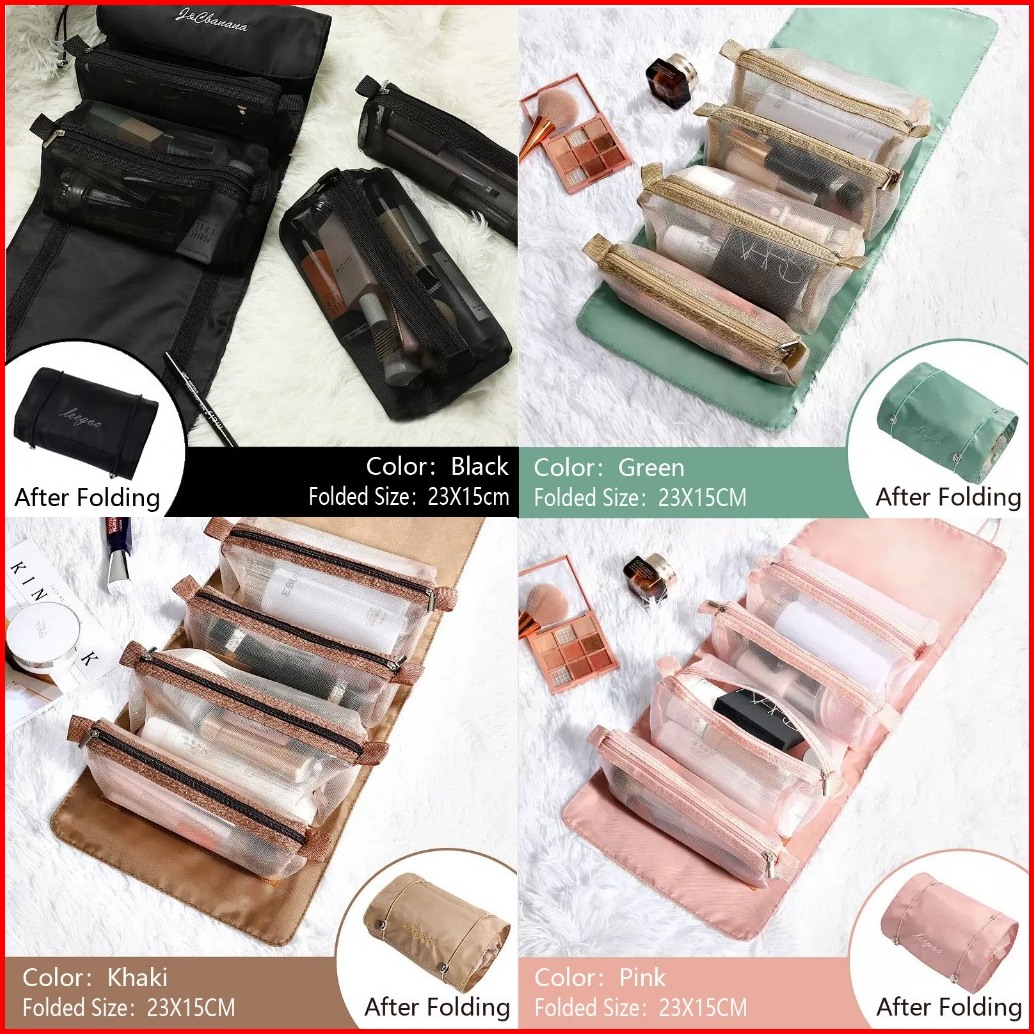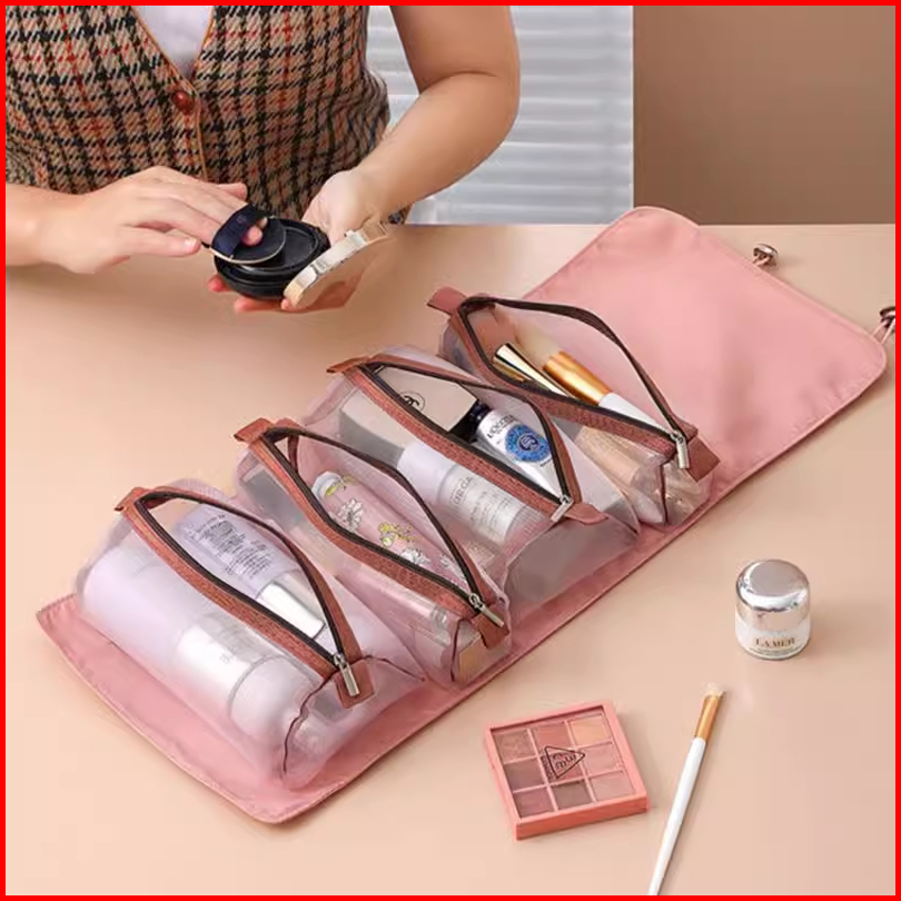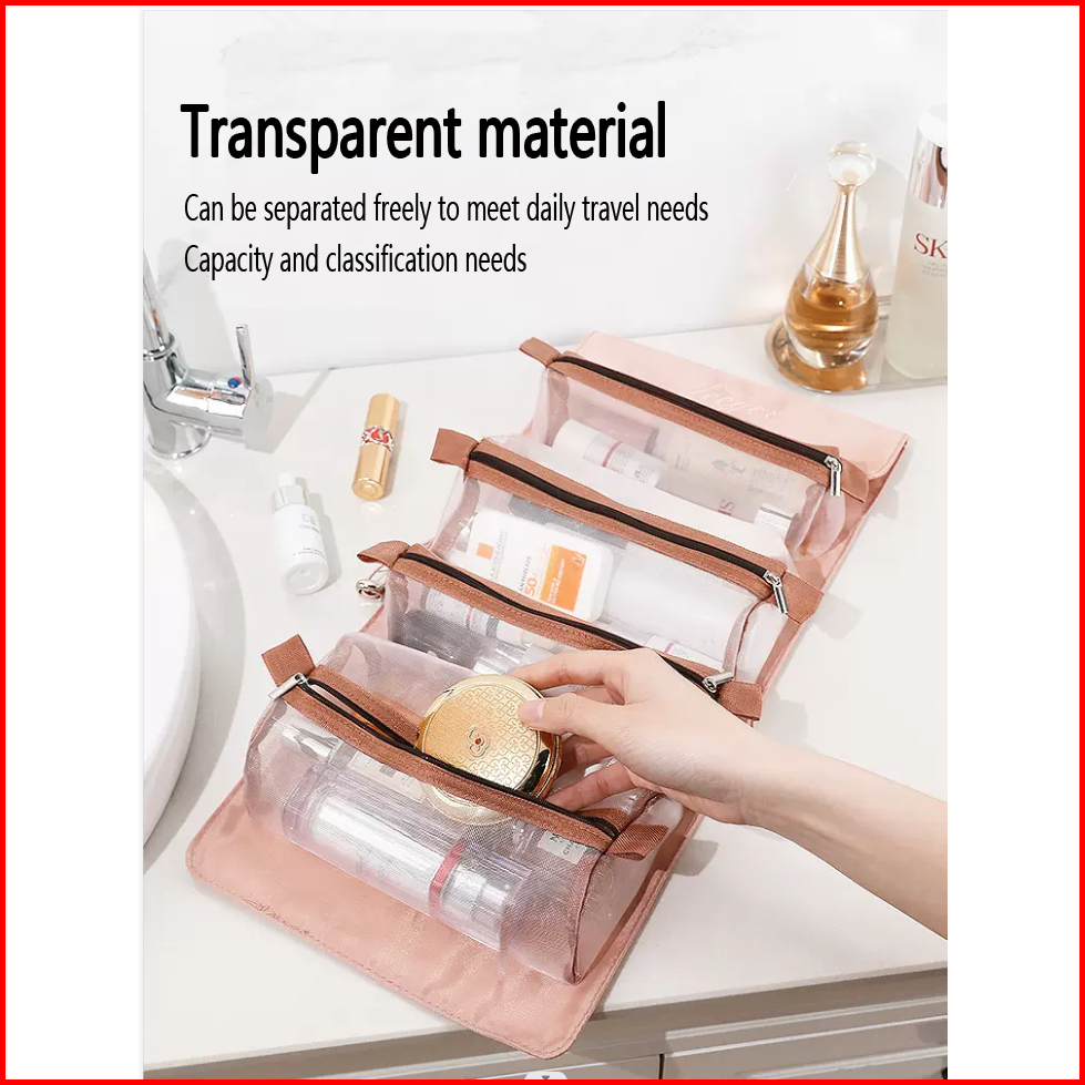 Tas Kosmetik Traveling Pouch Kosmetik Roll Bag Make Up 4in1jaring Transparant Polyster
