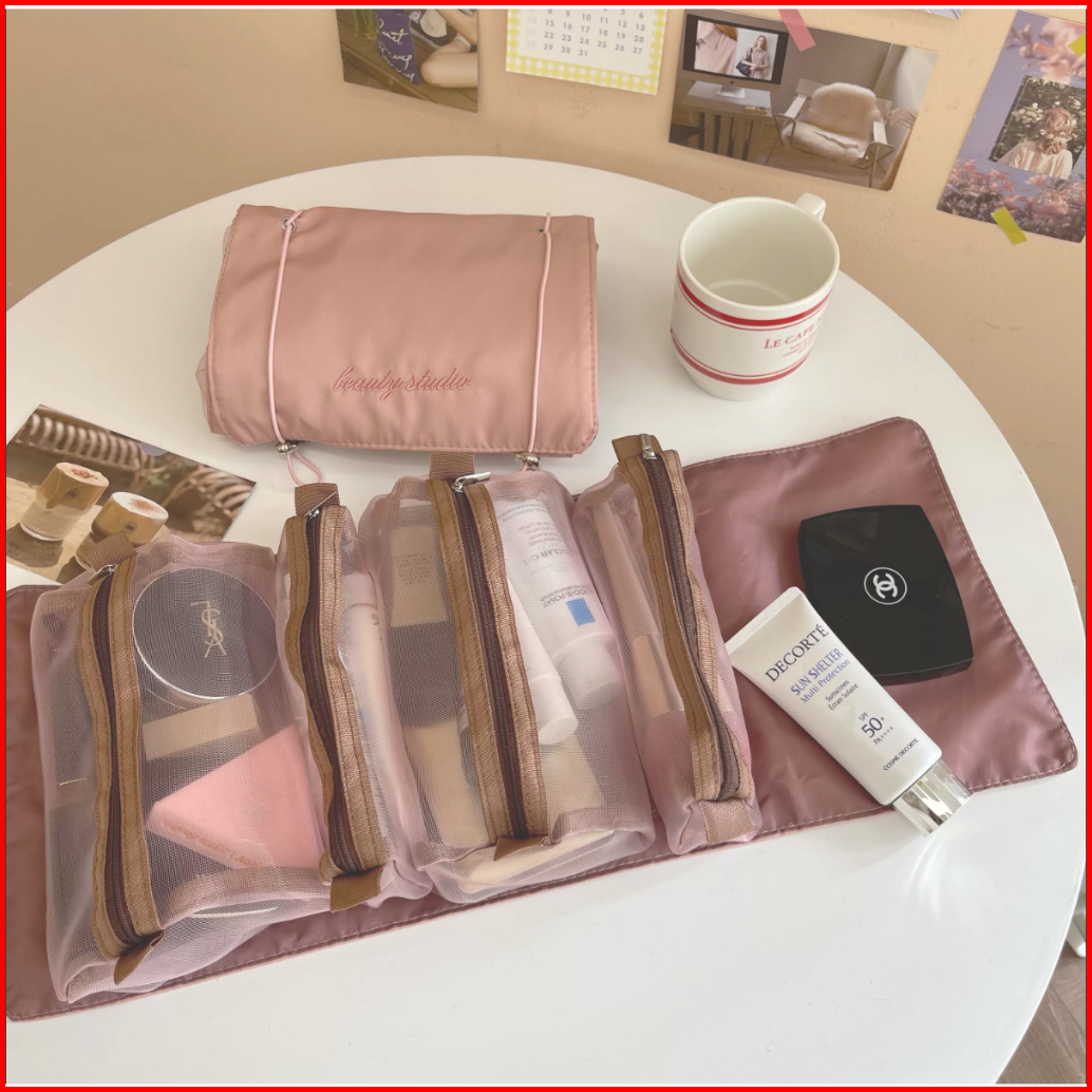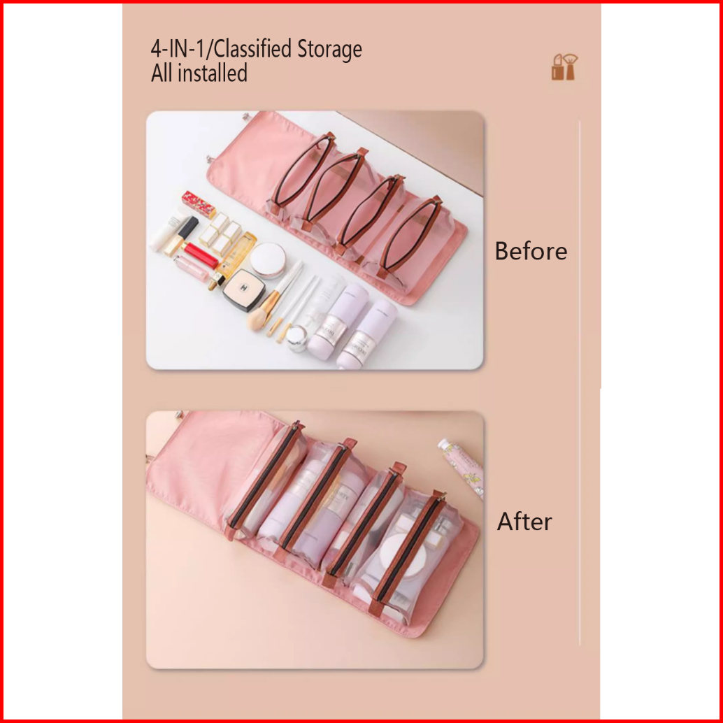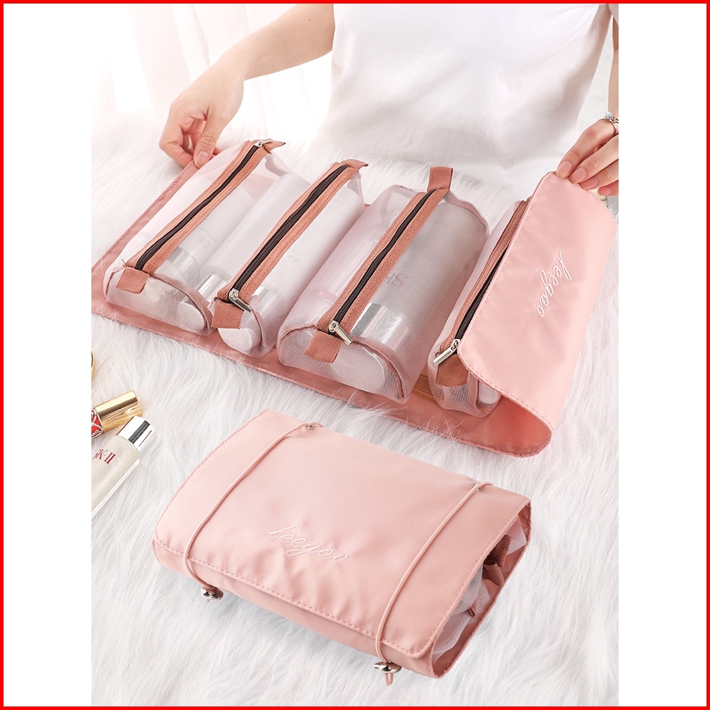 Tas Kosmetik Traveling Pouch Kosmetik Roll Bag Make Up 4in1jaring Transparant Polyster