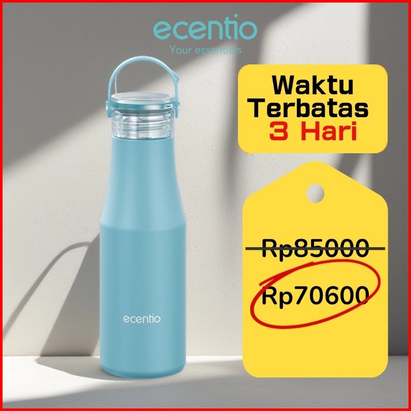 Ecentio Tumbler Stainless Aesthetic Portabel 480ml Dengan Pemisah Teh Botol Minum