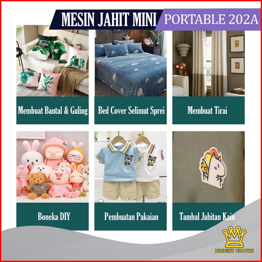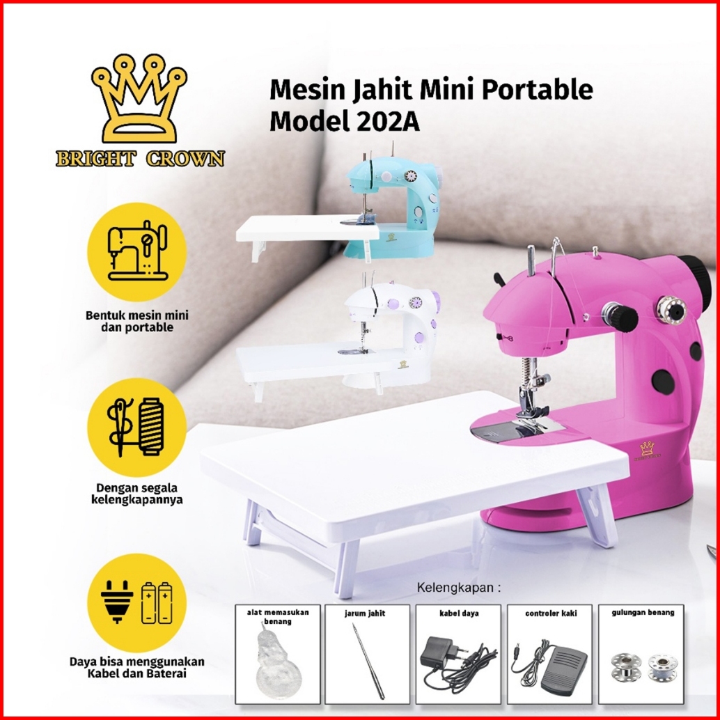 Bright Crown Terbaru Mesin Jahit Mini Portable 202a Mesin Jahit Multifungsi Lampu Malam Rapi Kokoh