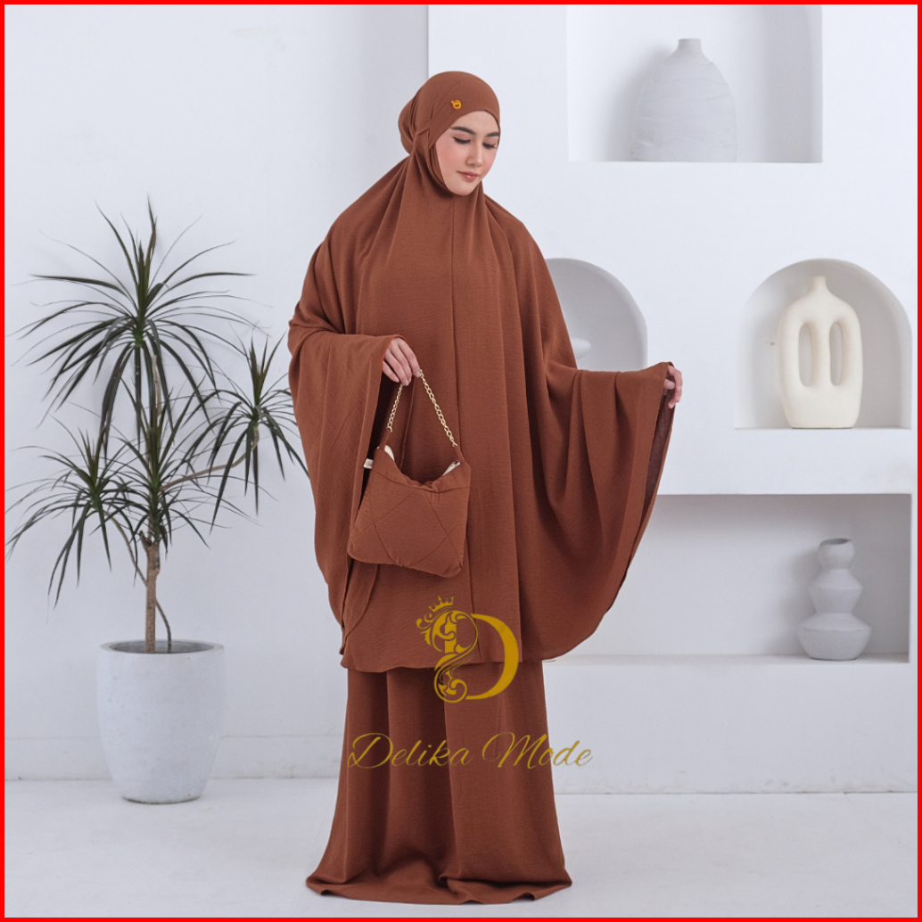 Delikamode - Mukena Dewasa Penutup Dagu Crinkle Airflow Premium Polos Mukenah Malaysia