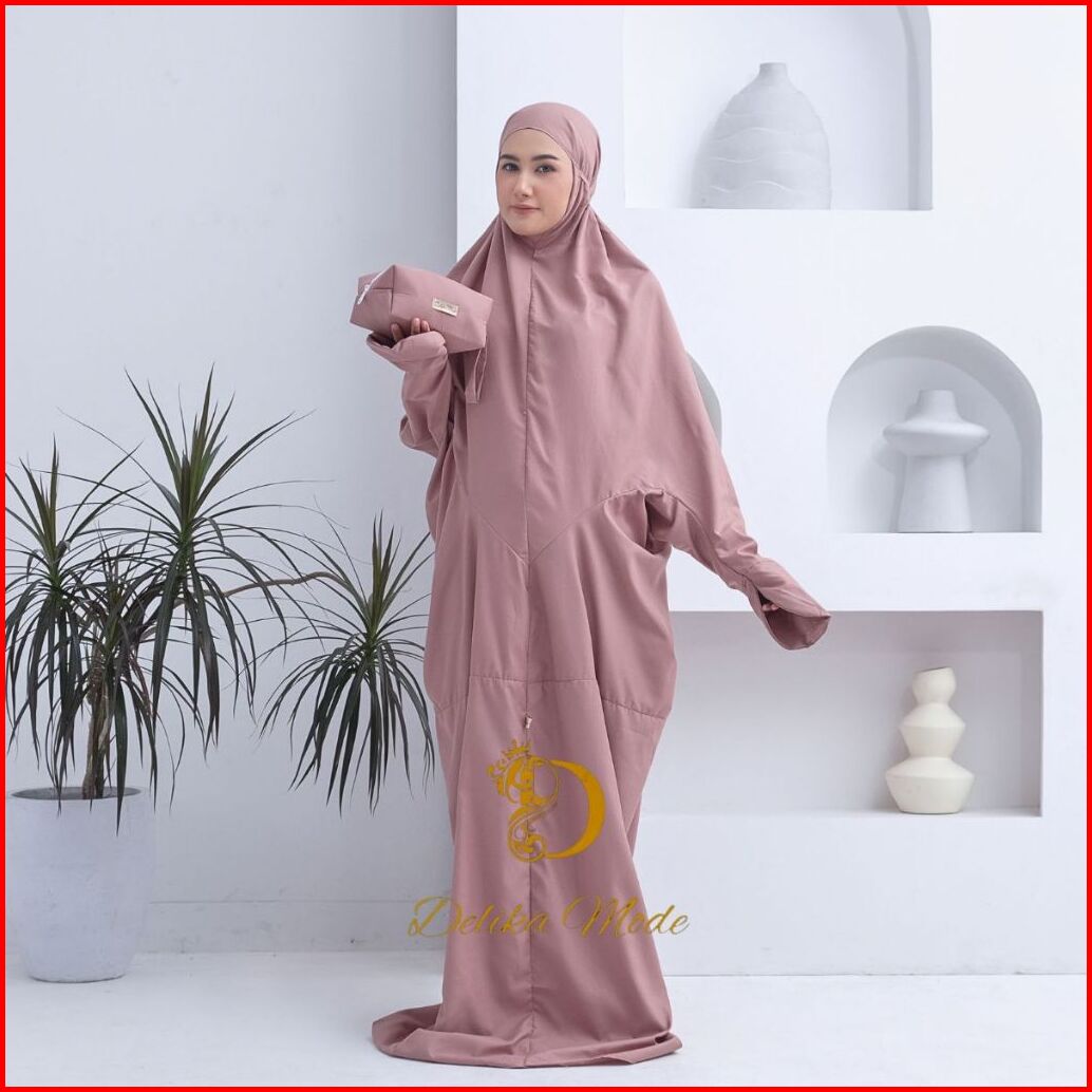 Delikamode - Mukena Terusan Traveling Polos Fatimah Katun Premium Mukenah Lajuran