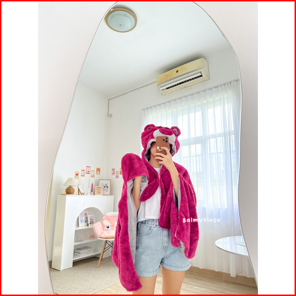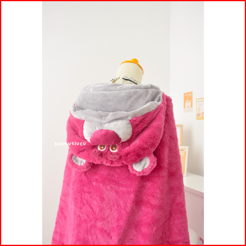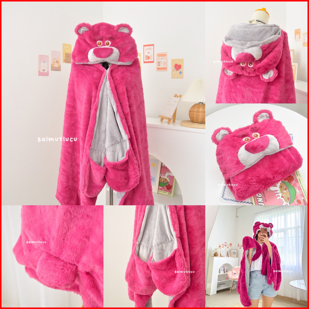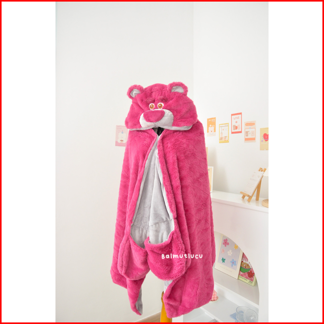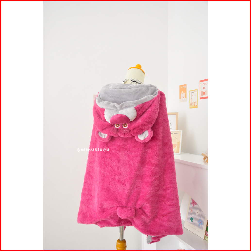 Balmutlucu Selimut Hoodie Karakter Lotso Ada Sarung Tangan Jubah Selimut Anak Dewasa Lucu