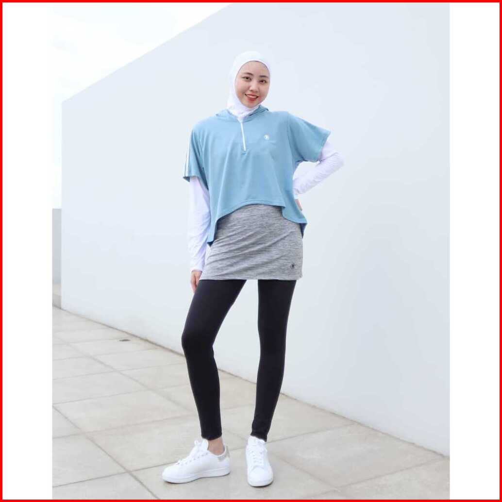 Asymmetric Hoodie Olahraga Padel Wanita Muslim Jumper Lari Bersepeda 9-0237