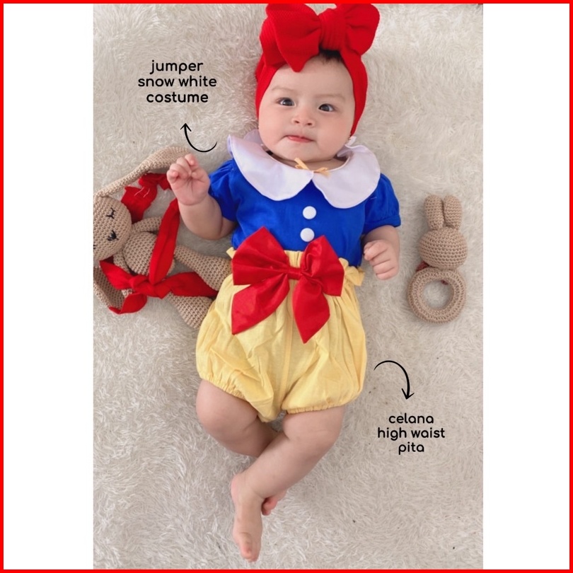 Cute Snow White Baju Jumper Bandana Pergi Lucu Fashion Anak Bayi Perempuan Cewek Terlaris Lucu Murah