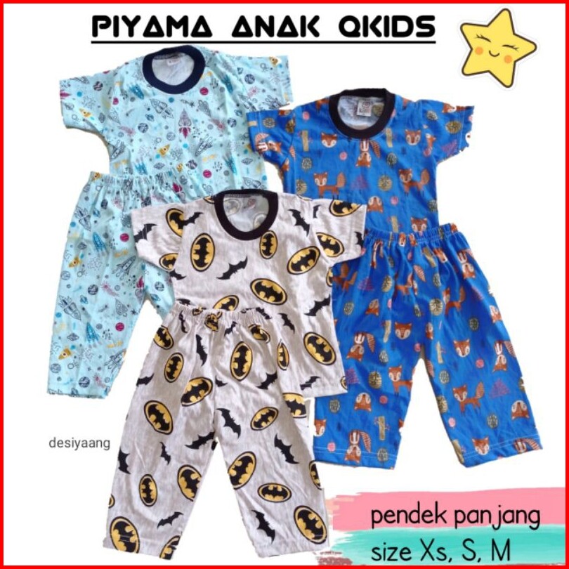 Piyama Anak Isi 2 3 Stel Size S 2-3tahun Lengan Pendek Celana Panjang