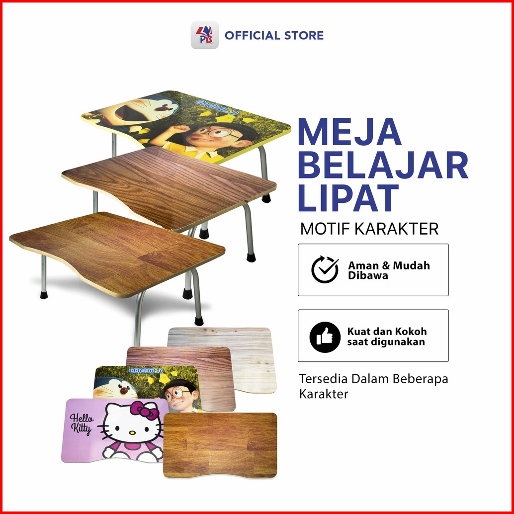 Meja Belajar Lipat Meja Kursi Lipat Portable Meja Laptop Serbaguna Motif Karakter Kayu Alami Doraemon Hello Kitty Bahan