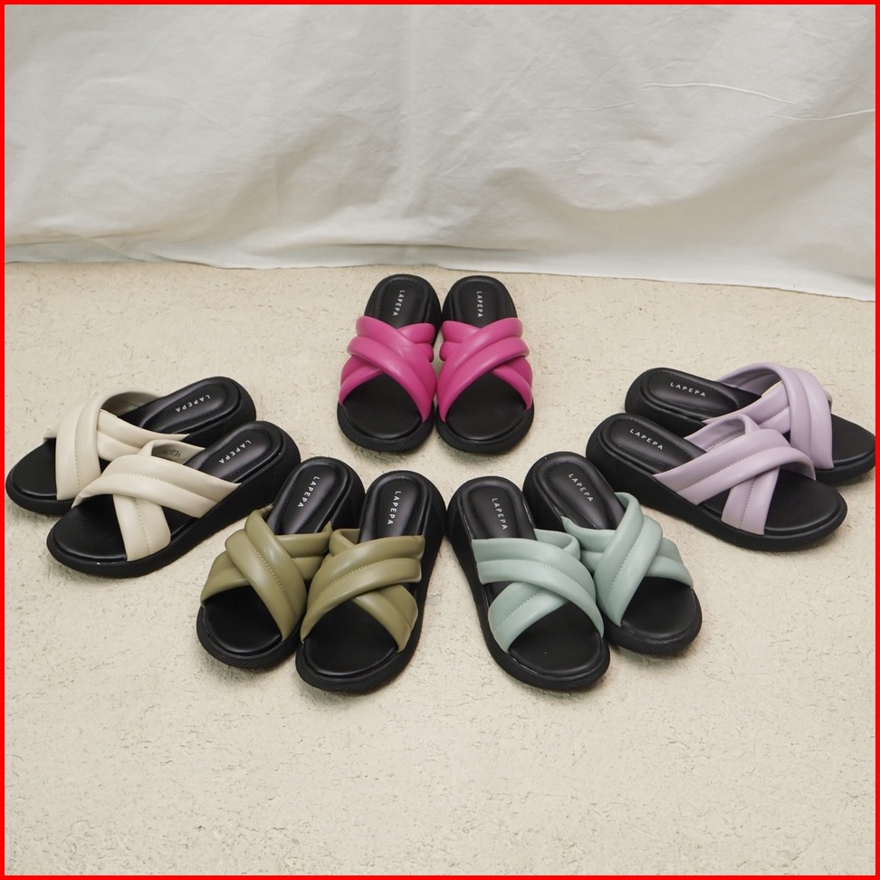 Lapepa Yuk - Sandal Wanita Wedges Nadhira All Color Sendal Cewek Platform Kondangan Hak Tinggi 3cm Model Silang 2 Size 3