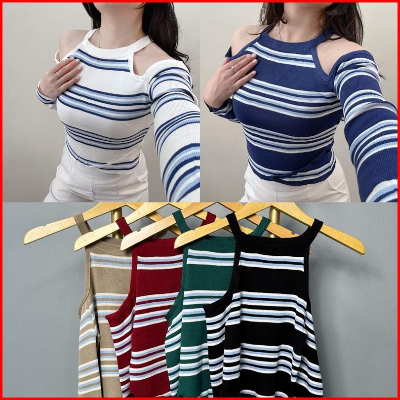 Luxe.dlabel - F18 Top Atasan Rajut Wanita Atasan Rajut Wanita Atasan Lengan Panjang Rajut Kaos Wanita Vest Wanita Atasan