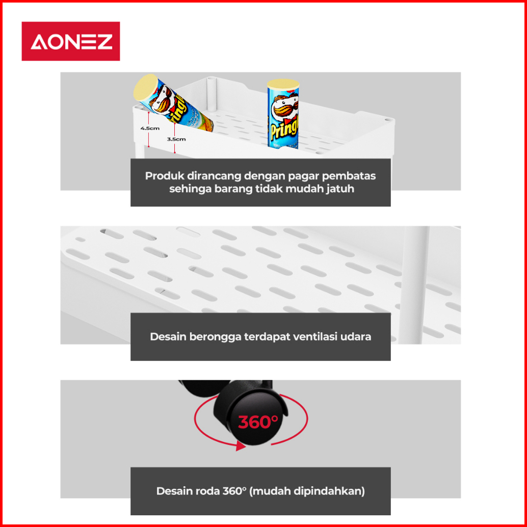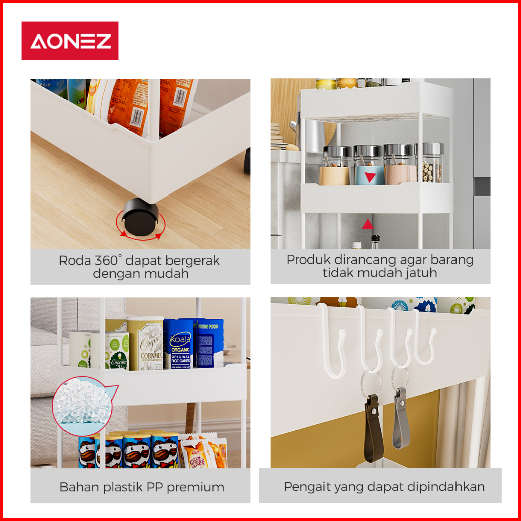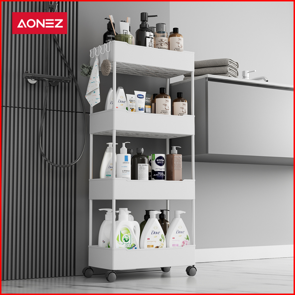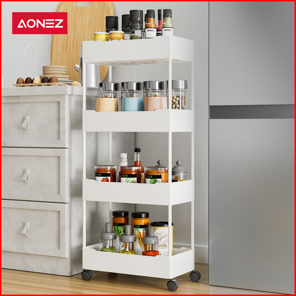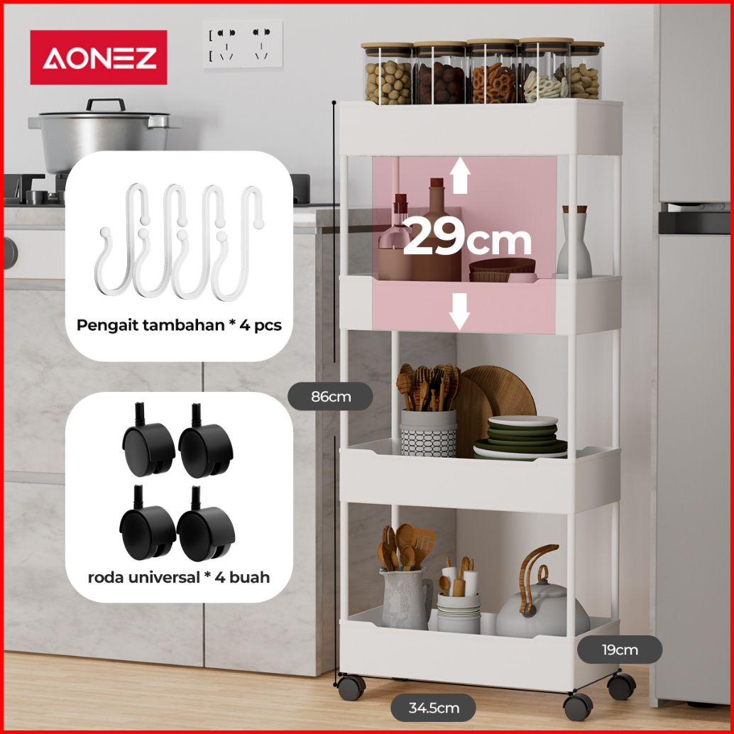 Aonez Rak Dapur Square Rak Troli Rak Kamar Mandi Rak Susun Serbaguna 4 Tingkat Dengan Roda