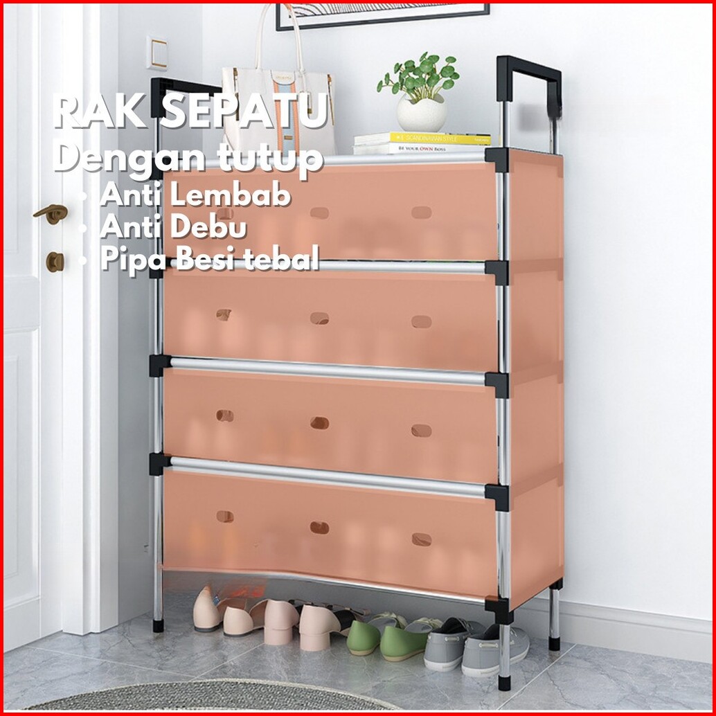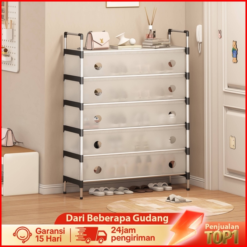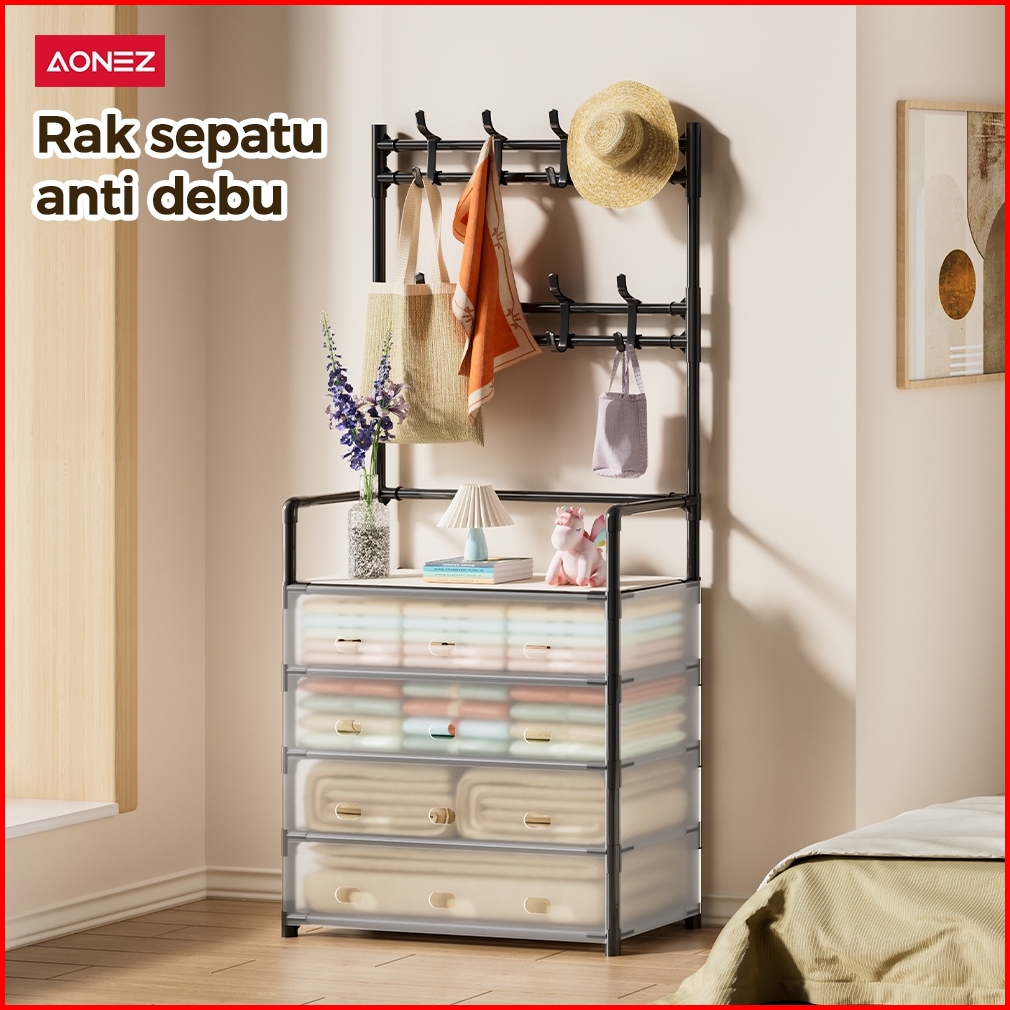 Aonez Rak Sepatu Tertutup Anti Debu 6 Susun Serbaguna Gantungan Tas Pakaian Rak Penyimpanan Dengan Penutup Shoe Rack Lem