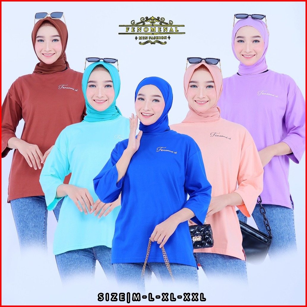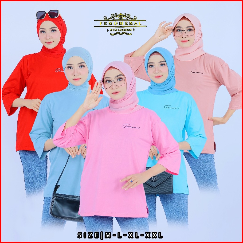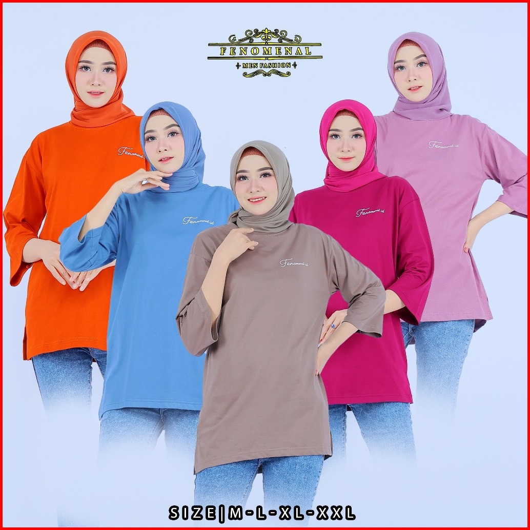 Kaos Oversize Hijab Style Lengan 7 8 Kaos Wanita Kekinian Katun Combed 20s Premium Kaos Wanita Jumbo Kaos Oversize Slit