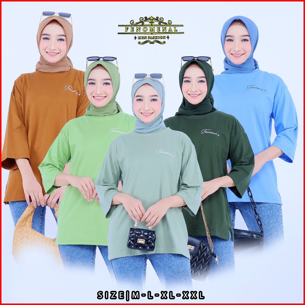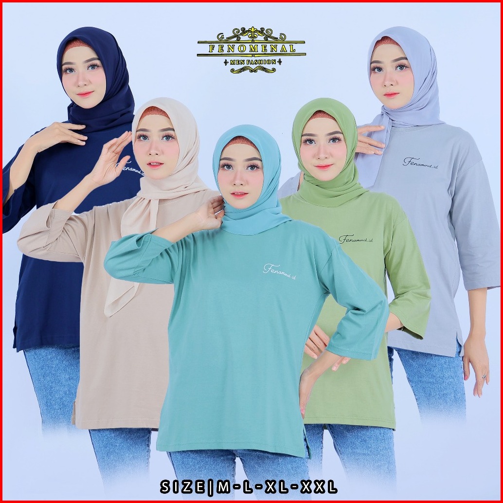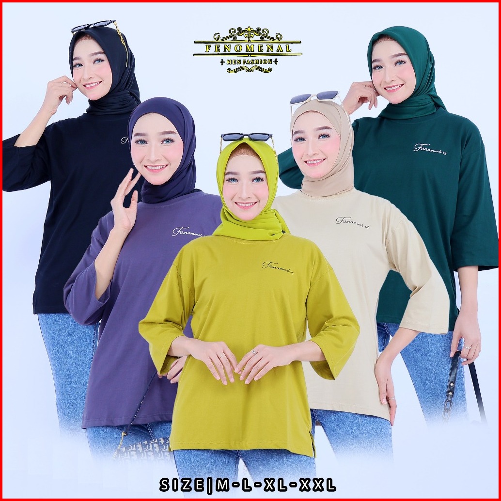 Kaos Oversize Hijab Style Lengan 7 8 Kaos Wanita Kekinian Katun Combed 20s Premium Kaos Wanita Jumbo Kaos Oversize Slit