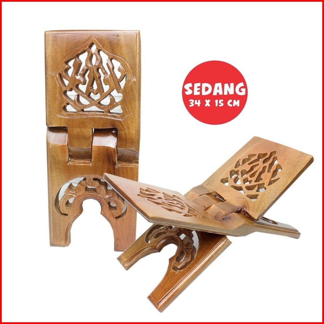 Rekal Alquran Meja Alquran Lipat Meja Ngaji Alas Dudukan Tatakan Model Ukir Jepara Bahan Asli Kayu Mahkota Jati - Mj