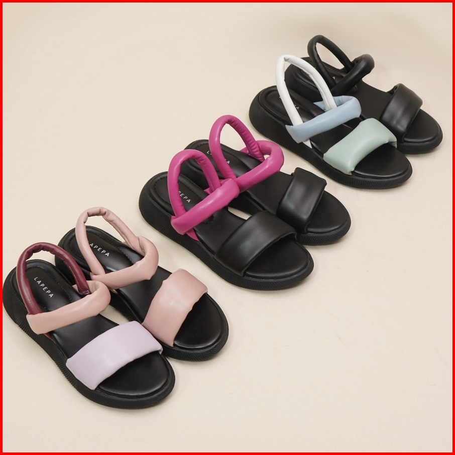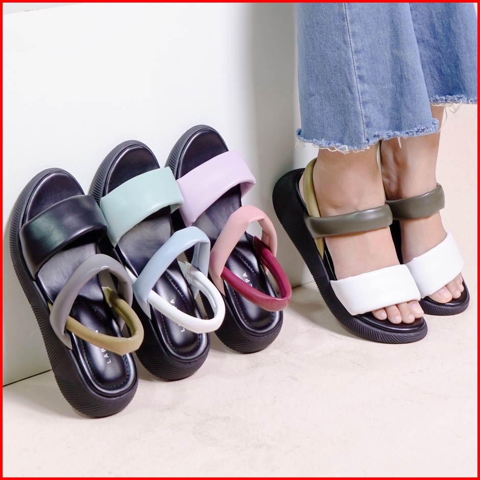 Lapepa Yuk - Sepatu Sandal Wanita Wedges Valerie All Color Model Ban Dua Tali Strap Belakang Hak Tinggi Sole 4 Cm Spatu
