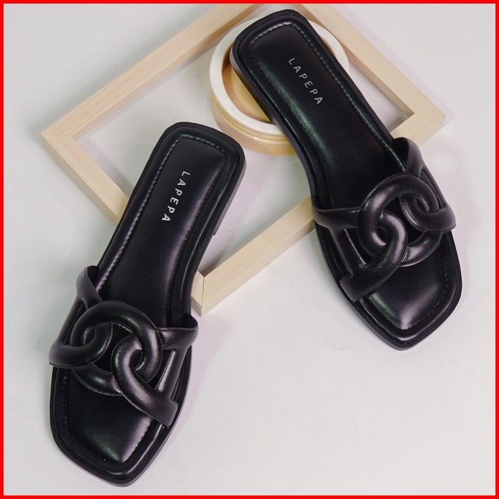 Lapepa Yuk - Sora Sandal Wanita Teplek Korea Casual Size 36 - 40 Sendal Slop Empuk Flat Cewek Kasual Rumahan Warna Hitam
