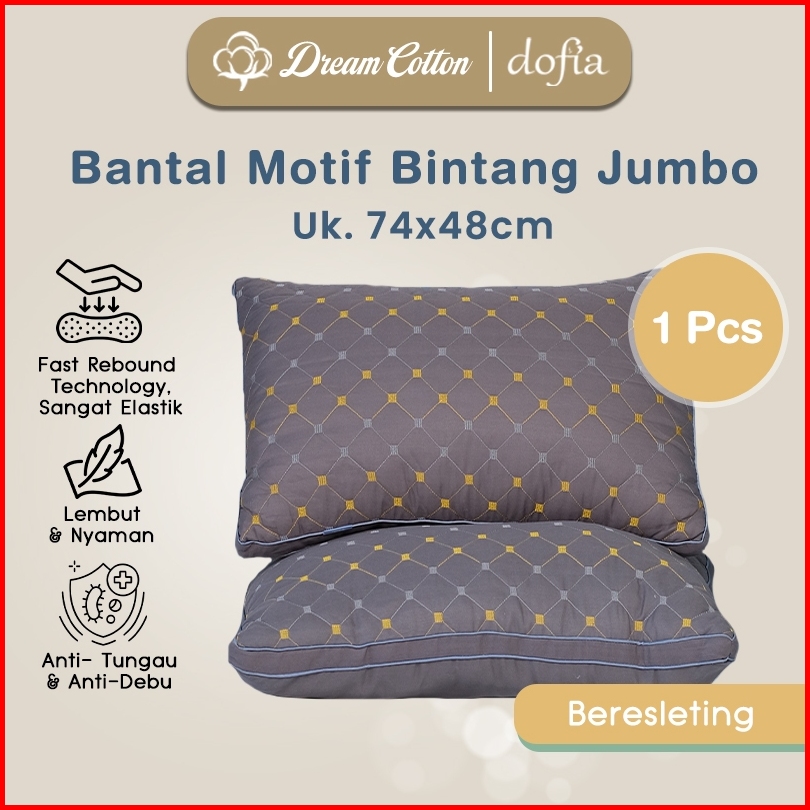 Dreamcotton Bantal Tidur Jumbo Microfiber Motif Bintang Uk 74x48cm Bantal Hotel Silikon List Samping Uk 65x45cm Fast Reb
