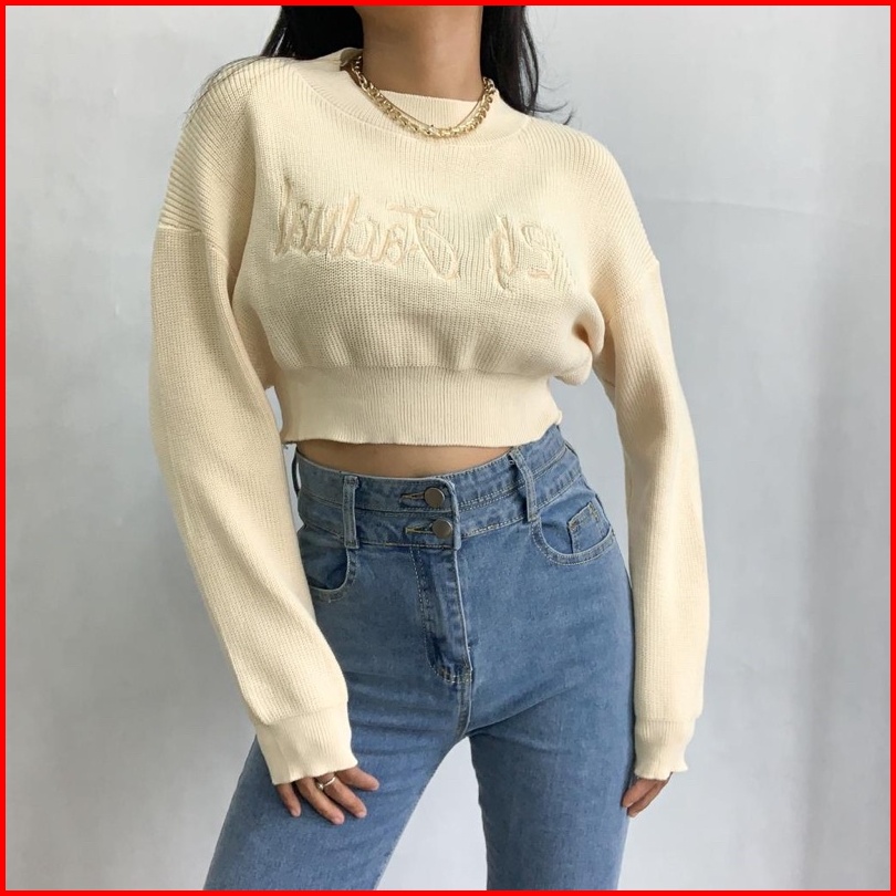 Luxe.dlabel - E79 Top Atasan Rajut Wanita Atasan Rajut Wanita Atasan Lengan Panjang Rajut Kaos Wanita Vest Wanita Atasan