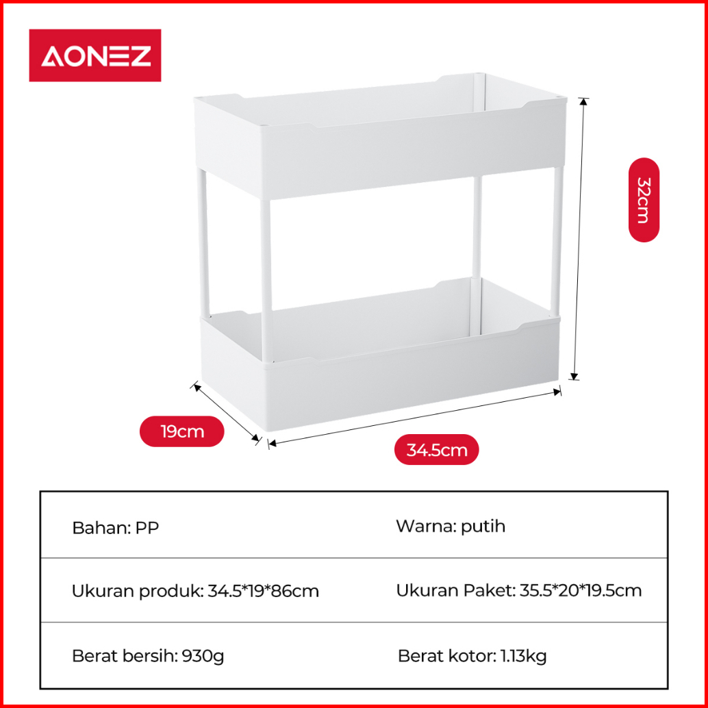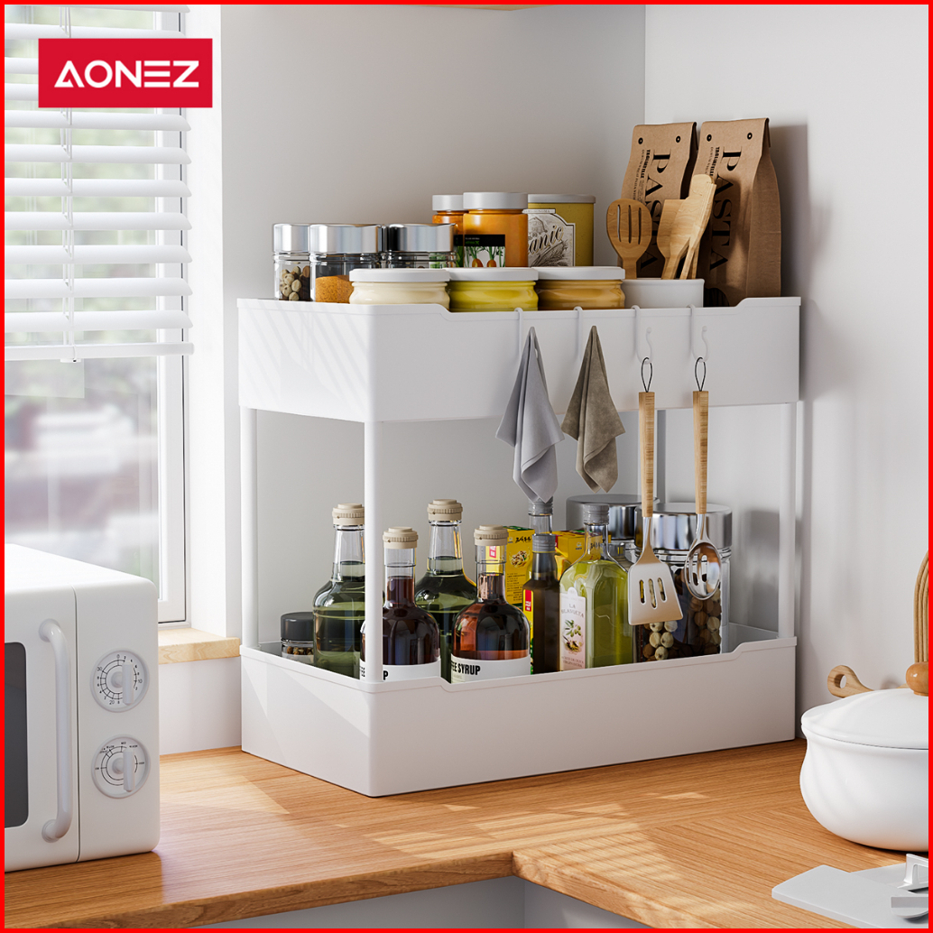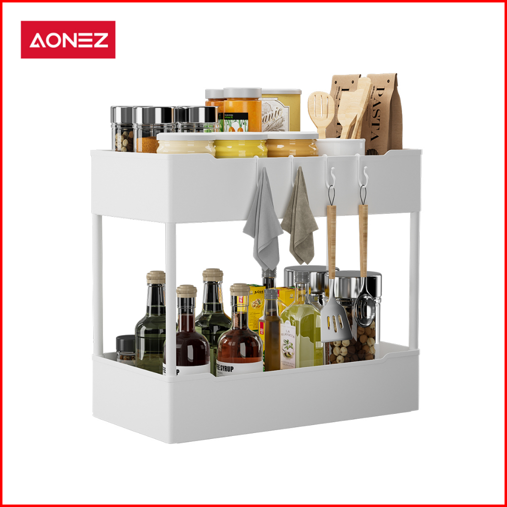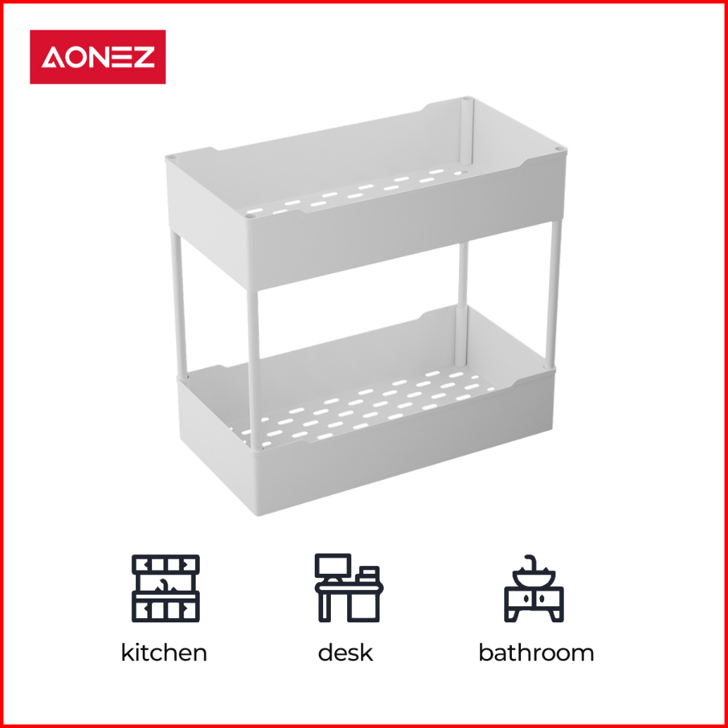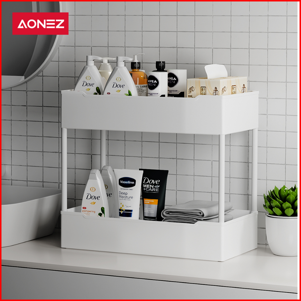 Aonez Rak Dapur Square Rak Kosmetik Rak Susun Serbaguna Rak Kamar Mandi Portable 2 Susun