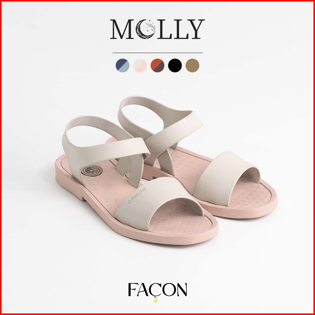Facon Molly Flats In Lyra - Sandal Tali Flats Wanita Tali Belakang Full Karet