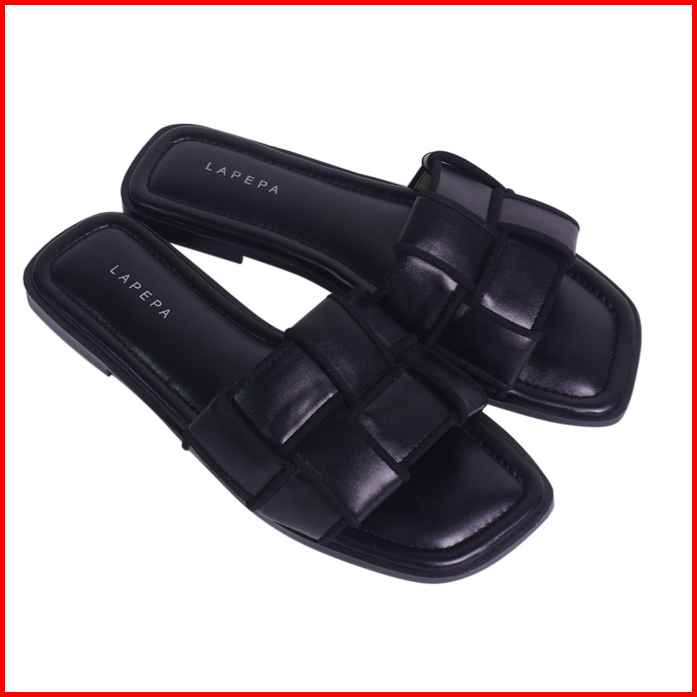 Lapepa Yuk - Nova Sandal Wanita Teplek Korea Casual Size 36 - 40 Sendal Slop Empuk Flat Cewek Kasual Rumahan Warna Hitam