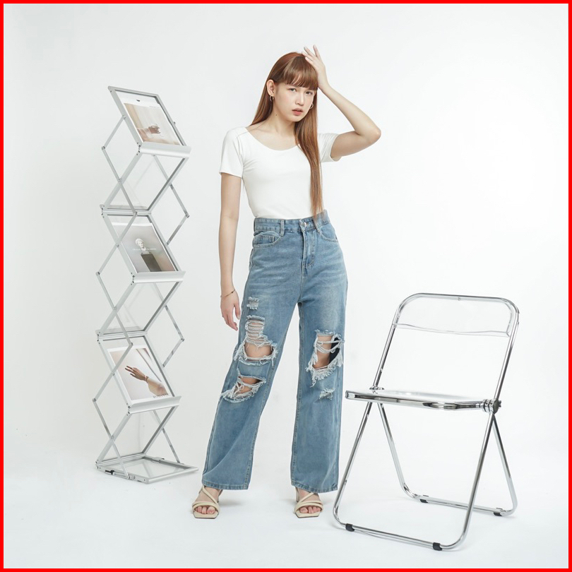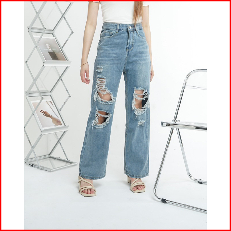 Luxe.dlabel - Jeans 114 Celana Panjang Highwaist Wanita Jeans Premium Jeans Wanita Polos Ripped Jeans High Waist Jeans W