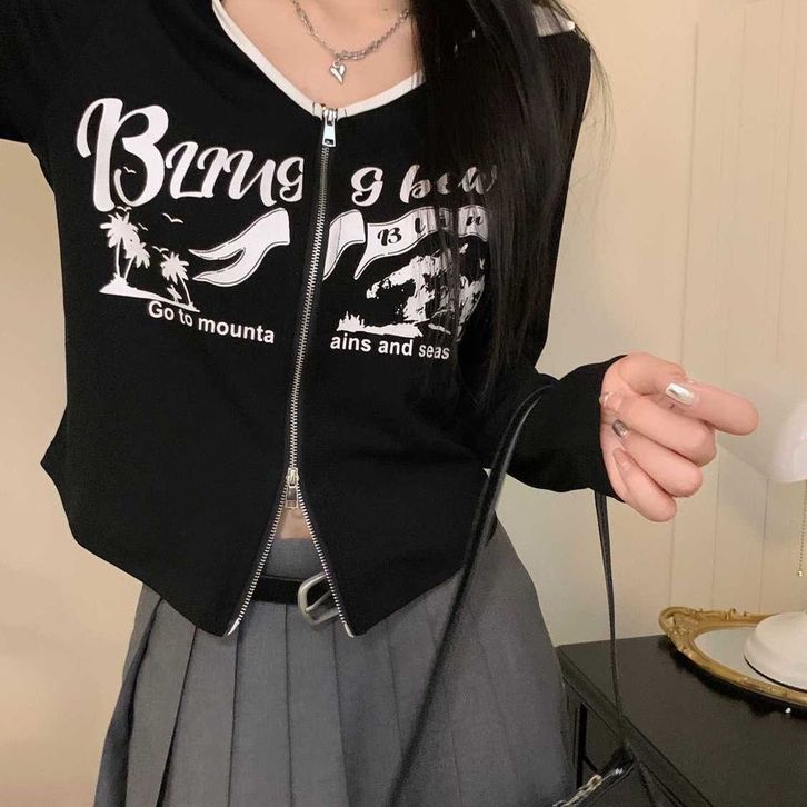 C0D##zip up long sleeve/kaos polos lengan panjang wanita/crop top korean style/atasan pendek wanita/y2k