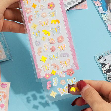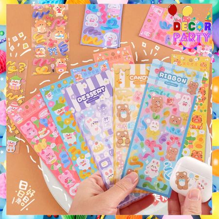 DP Sticker Waterproof Kartun Bear Rabbit Hologram Stiker Motif Kartun Beruang Dan Kelinci Korea Lucu Anti Air Dekorasi H