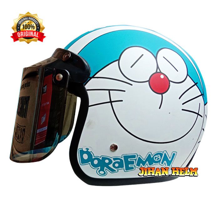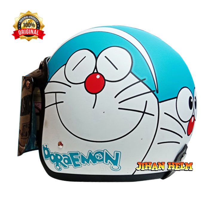 HELM BOGO RETRO JM / HELM BOGO DORAEMON BIRU DOFF TERBARU