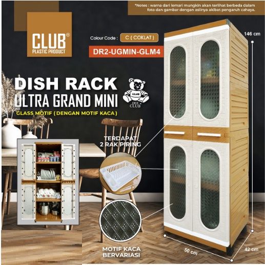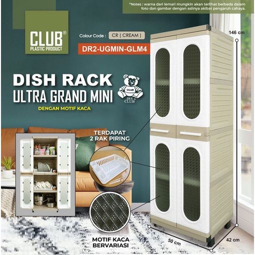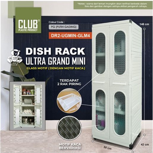 PROMO GRATIS ONGKIR JUMBO Rak Piring Club SUSUN 4 + kaca Cermin MURAH KUAT (DR2-UGMin-GL4) Lemari Dapur Murah Dp0