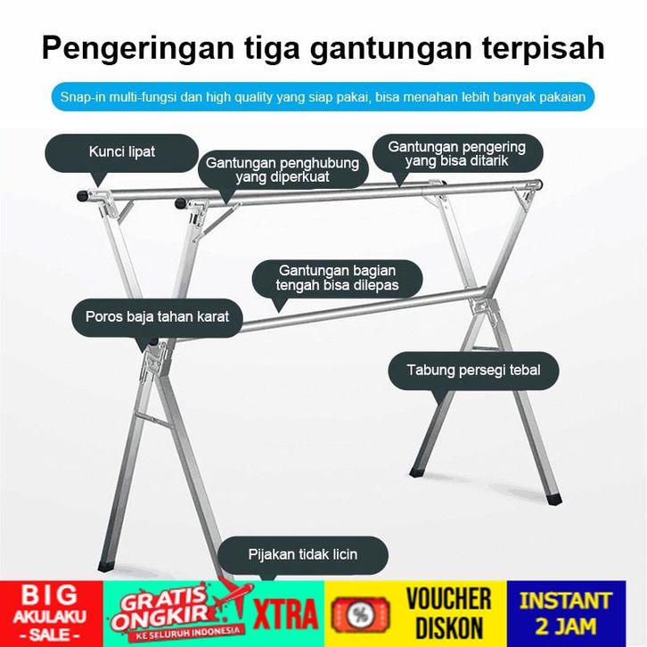 Jemuran Lipat Stainless Steel Jemuran Pakaian Jemuran Baju Lipat Portable Awet Kuat Tahan Lama WHI FURNITURE SHOP