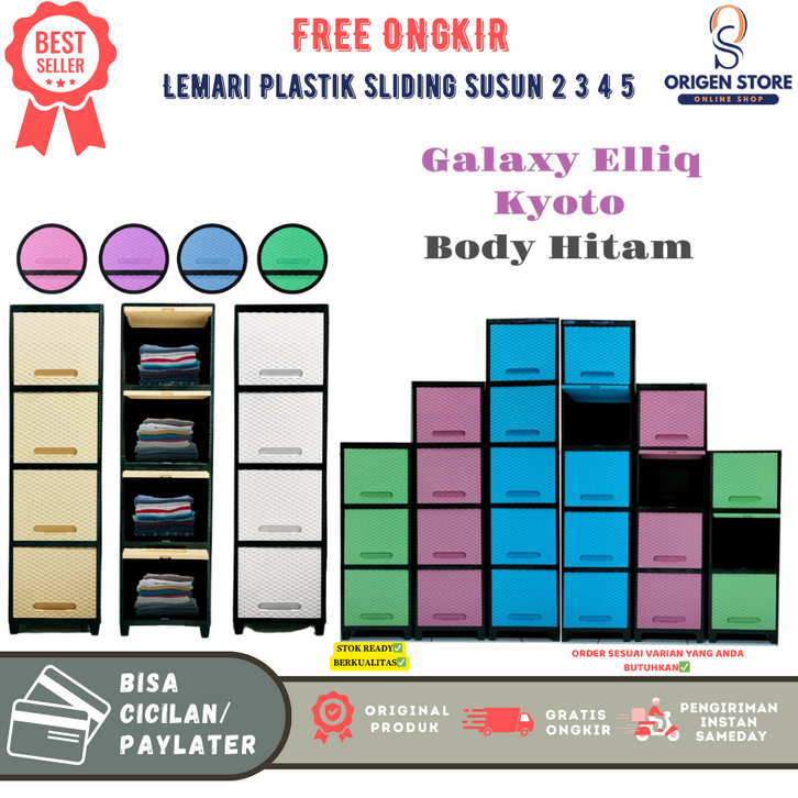 GRATIS ONGKIR Lemari Plastik Sliding Susun 2-5 Warna Cerah