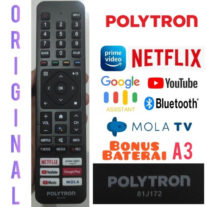 Remote TV Polytron LED Android google Smart TV 81J172 bisa google voice original