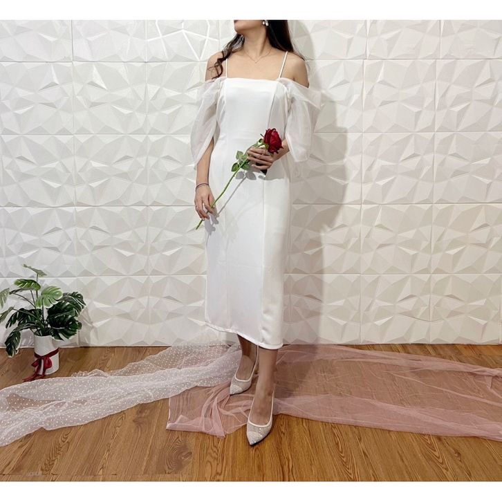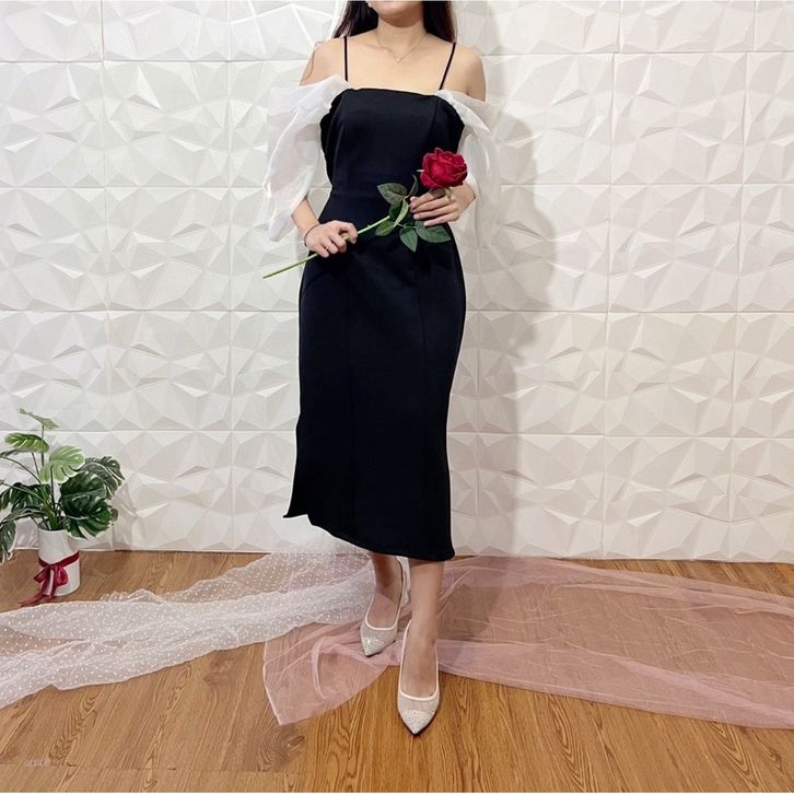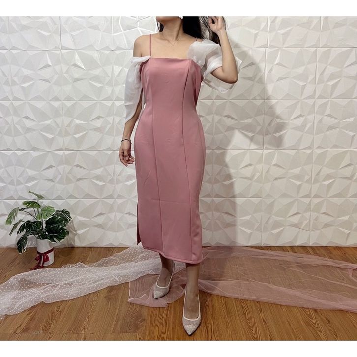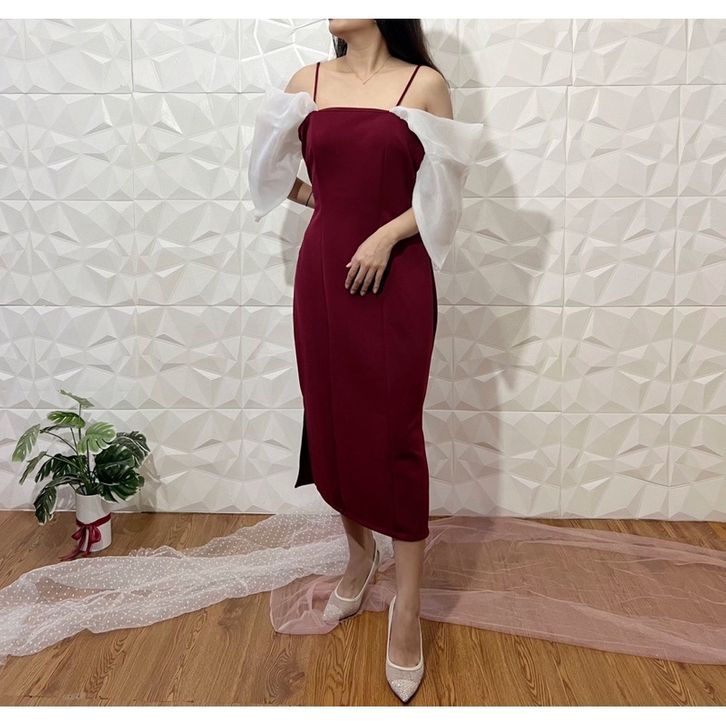 Scarlett Long Dress up to BIG SIZE Premium Korean Style Maxi Dress Combine Organza Maroon Black Pink Broken White