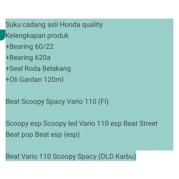 Paket 4aitem Bearing Gardan Beat Scoopy Spacy Vario 110 (FI) Scoopy esp Scoopy led Vario 110 esp Beat Street Beat pop
