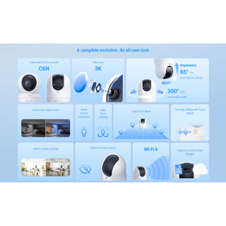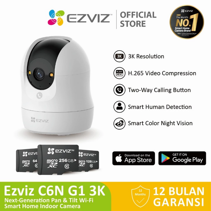 Ezviz C6N 5MP 3K G1 Pan & Tilt Wi-Fi IP Camera CCTV Indoor Smart Home Security w/SD Card 32/64/128/256GB