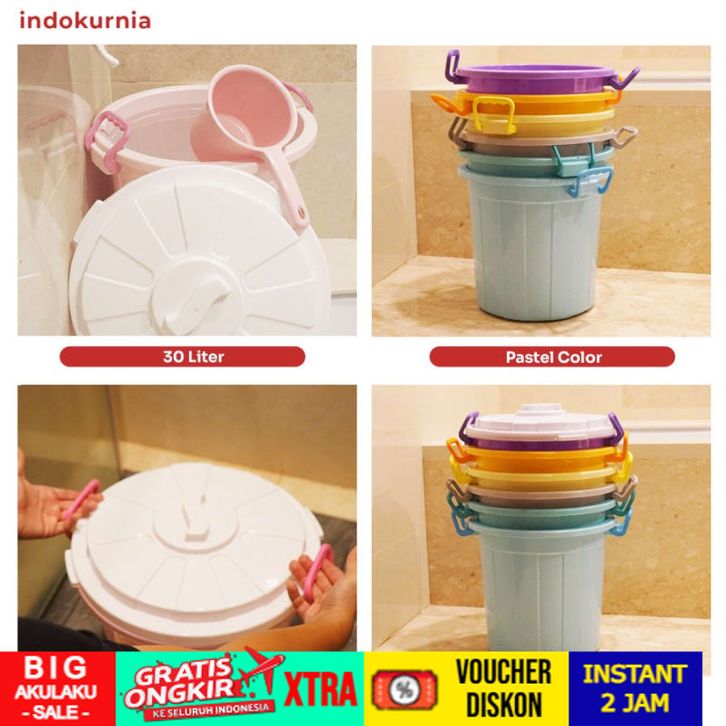 IK - EMBER HONGKONG 8 Galon PASTEL 30 Liter Ember Plastik dengan Tutup KUALITAS PREMIUM
