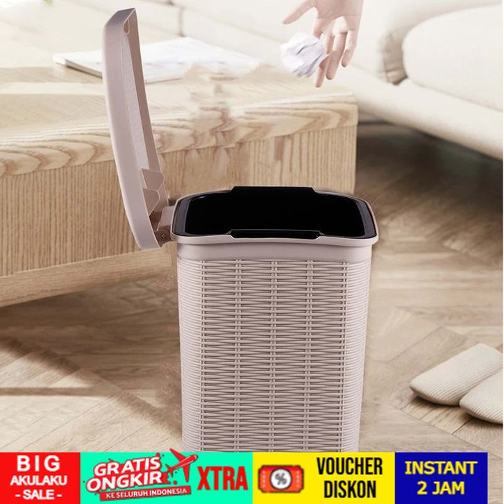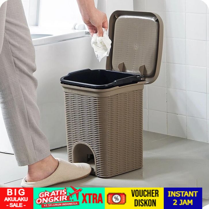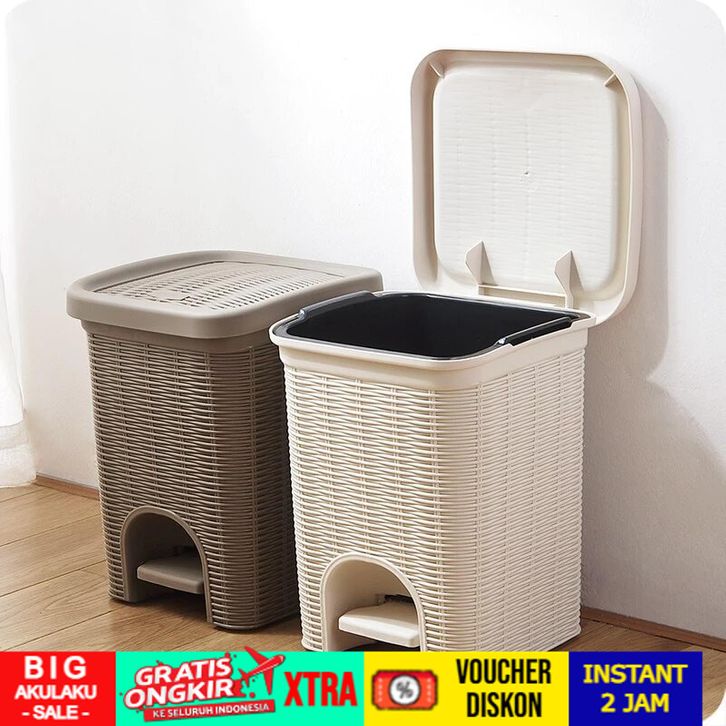 Tempat Sampah Injak Buka Otomatis Motif Rotan Anyam Estetik