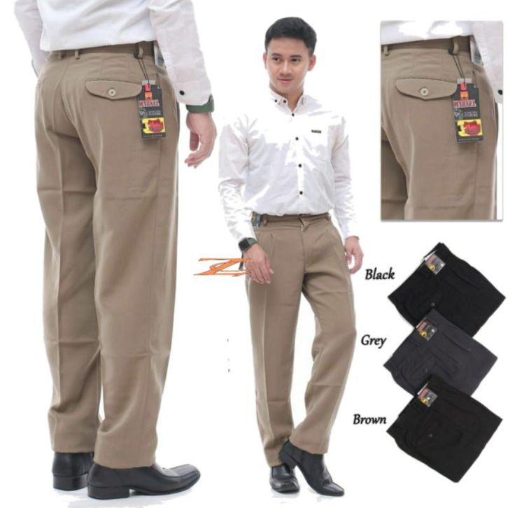 CELANA BAHAN PRIA PANJANG FORMAL KANTORAN KERJA 27-38 HITAM COKLAT CREAM ABU JUMBO BAGUS BERKUALITAS CELANA PRIA