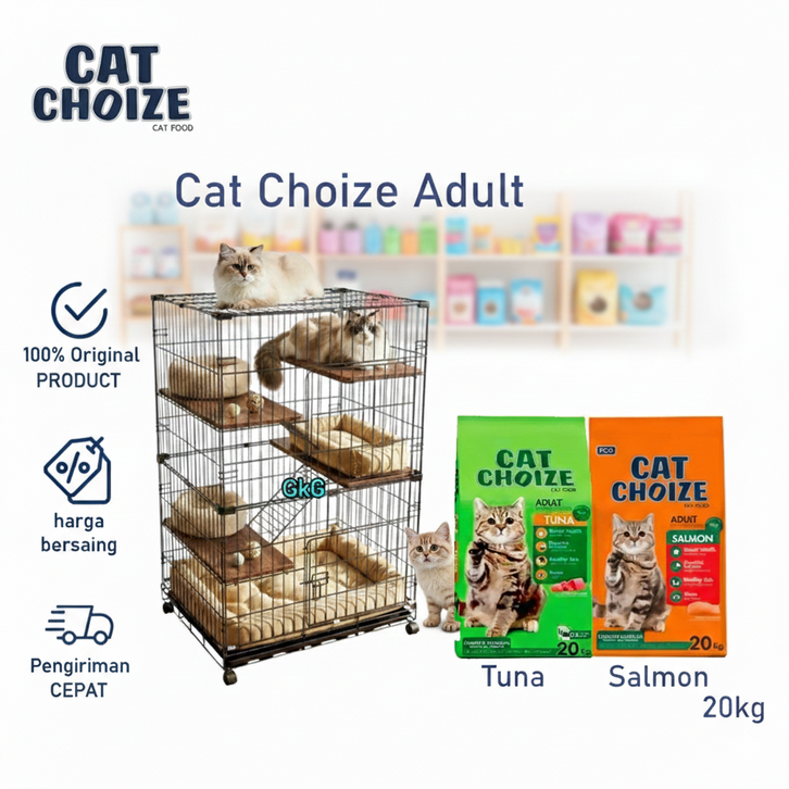 [Mall] makanan kucing murah 1kg 20kg basah kering cat choize + kandang kucing meo jumbo aluminium 3 tingkat besar lipat