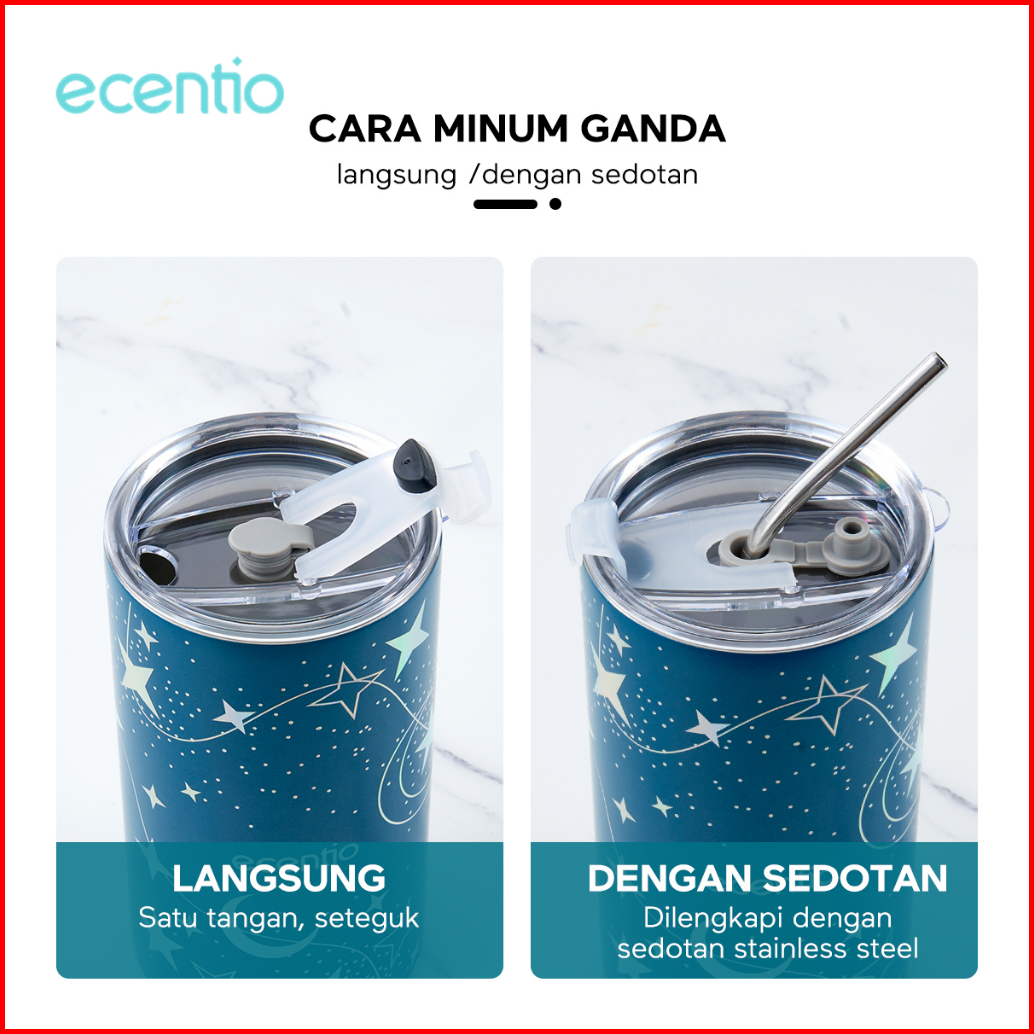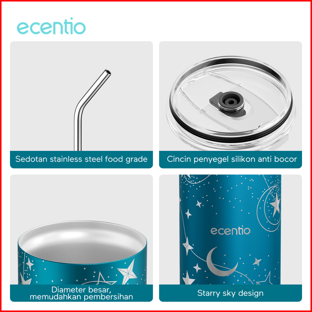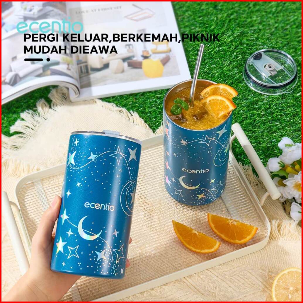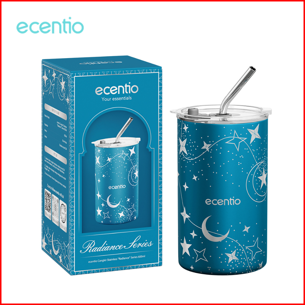Ecentio Tumbler Minum Stainless Aesthetic Ramadan 600ml Dengan Sedotan Brilliant Series Custom