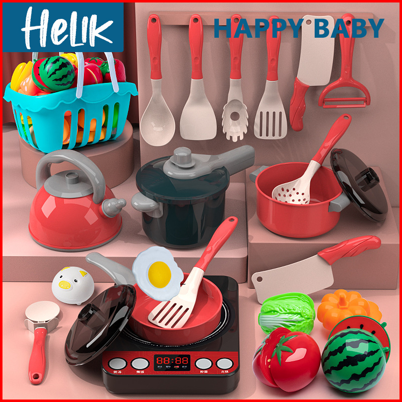 Mainan Masak Masakan 108pcs Set Mainan Dapur Anak Bermain Rumah Kompor Mainan Anak Bisa Nyala Mainan Cooking Set