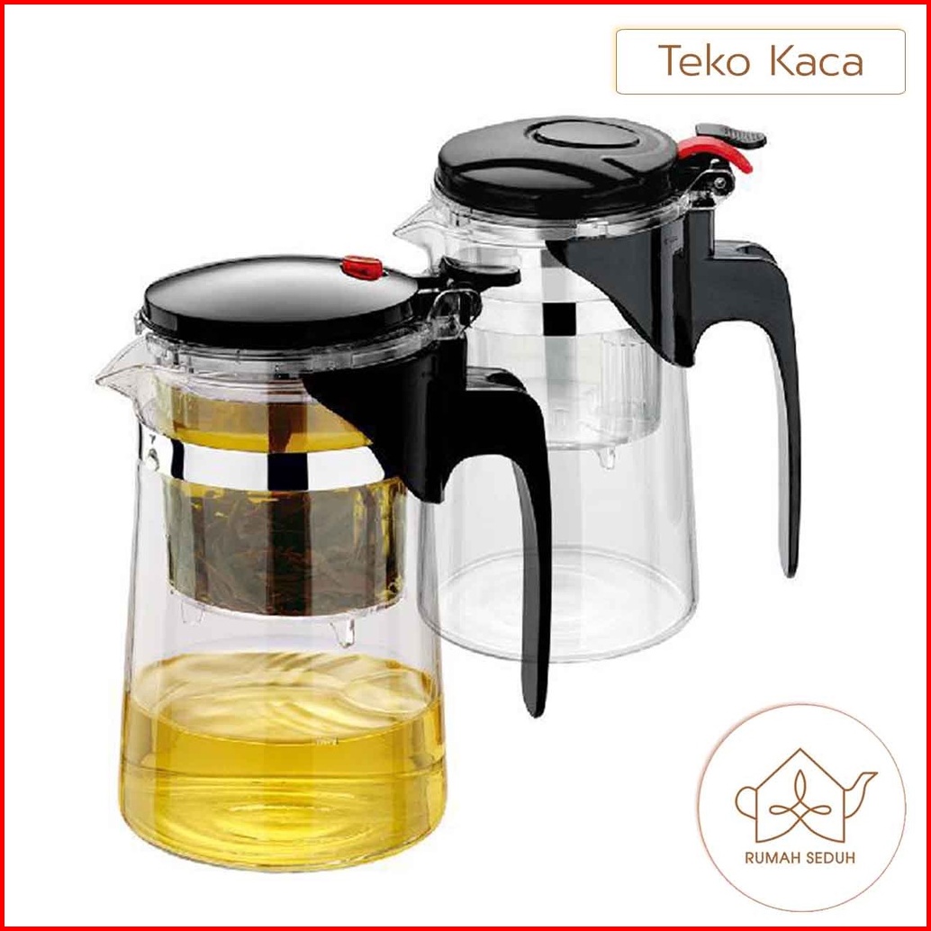 Teko Teh Kaca Dengan Saringan - Tea Pot Bening - Teapot With Infuster 500ml 750ml 900ml