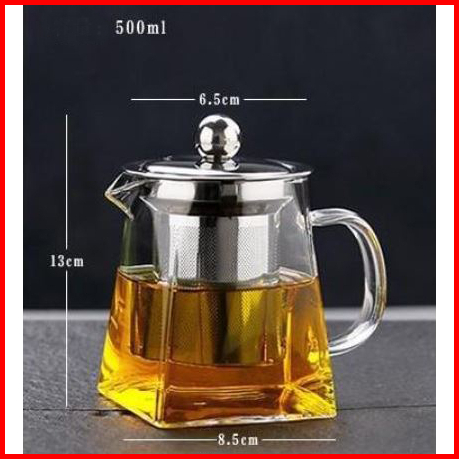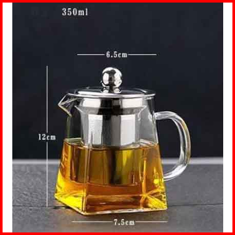 Teko Kaca Dengan Tutup Dan Saringan Stainles Steel 350ml 500ml 750ml - Tea Pot - Teko Teh