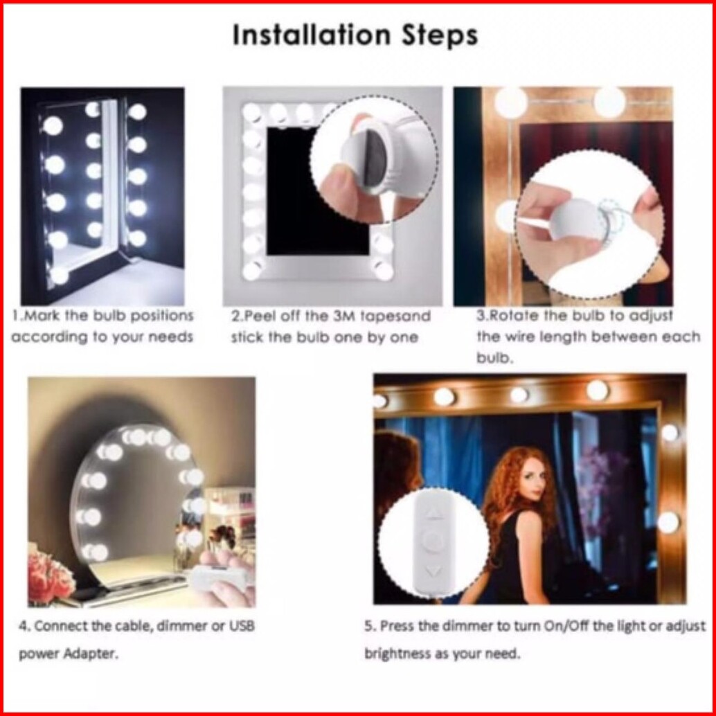 Lampu Makeup 10 Bohlam 3 Warna Lampu Hollywood Lampu Multifungsi Lampu Led Lampu Dingding Top1007