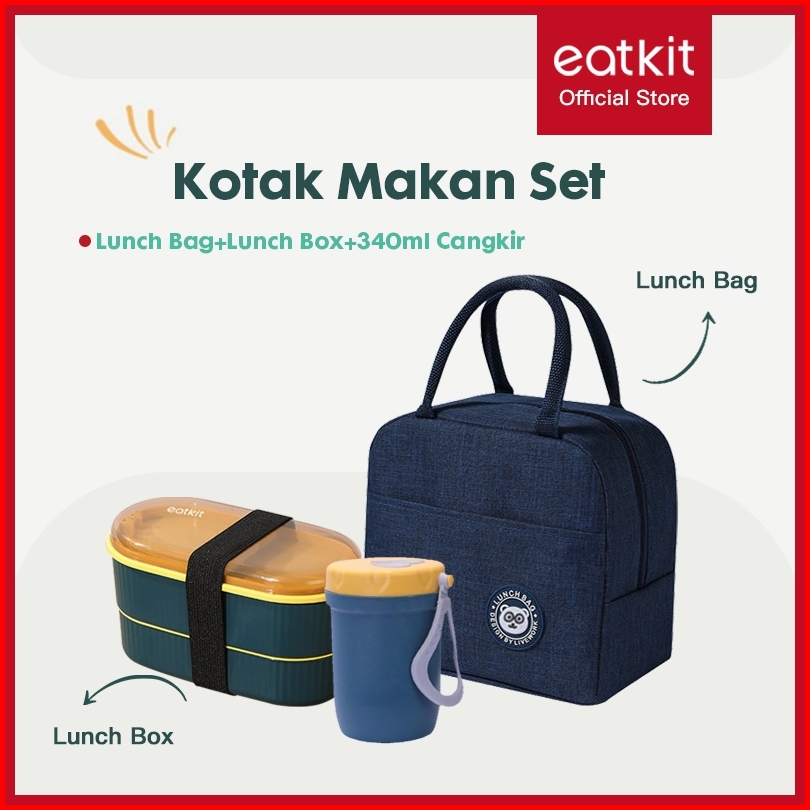 Eatkit 3in1 Lunch Box Set Kotak Makan Siang Aman Untuk Microwave Kotak Bekal Tas Thermal Lunch Bag Warna