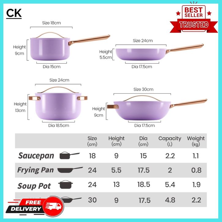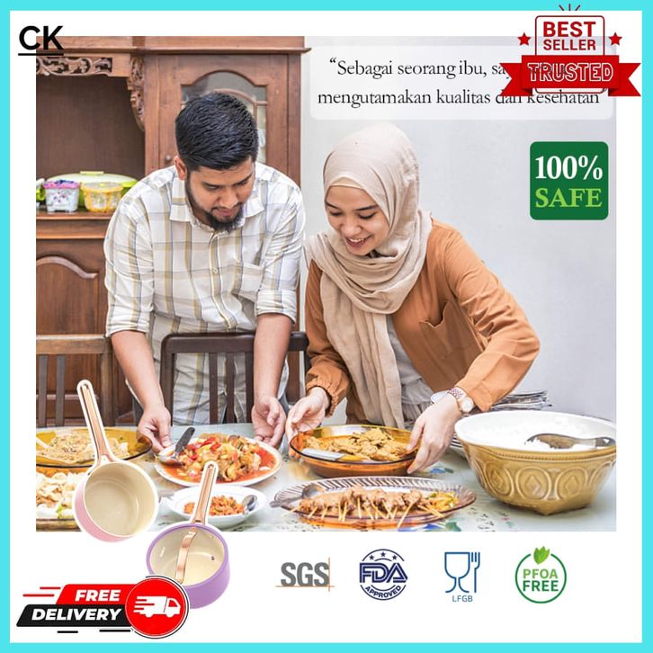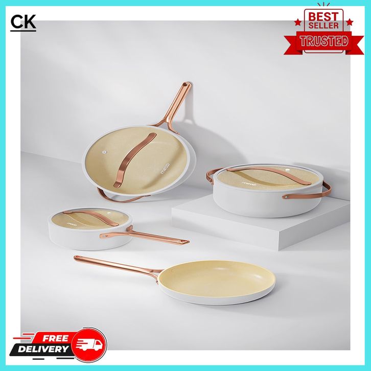 Mecoo Most Aesthetic Premium Non-Stick Cookware 7 PCS Komplit Granit Anti Lengket 1 Set Lengkap Serbaguna Official Store